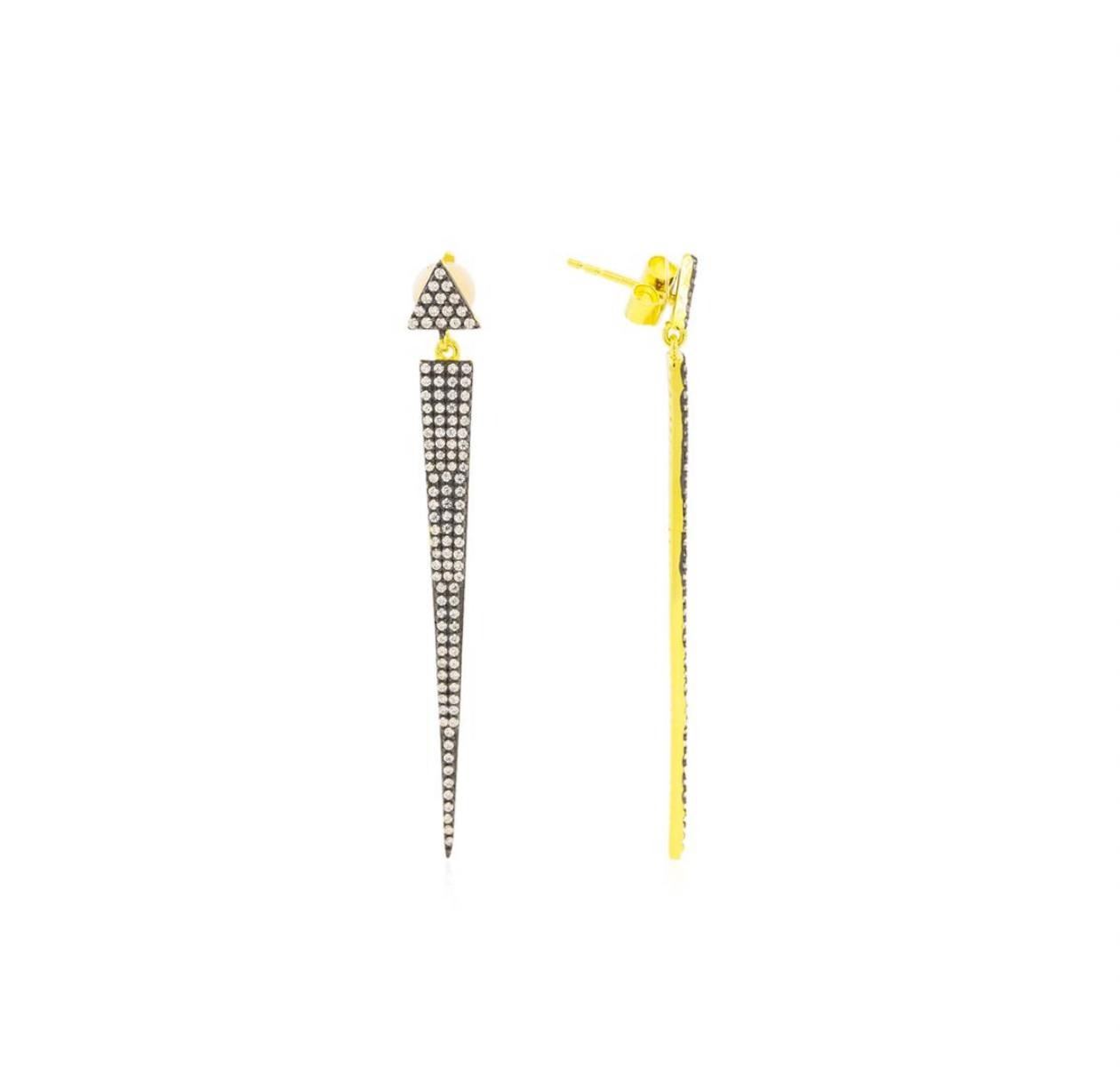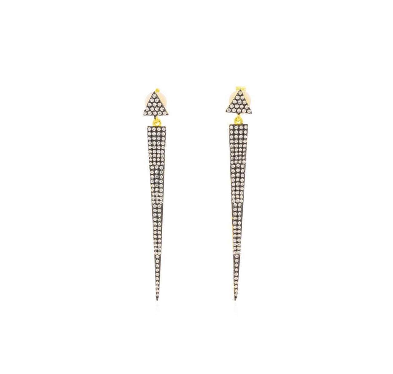 One of a kind high fashion sterling silver Earrings weighing 5.4 grams. Containing: Cubic Zirconia. This sterling silver promises a lasting shine.