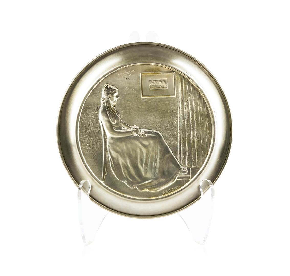 This is a 1972 first annual George Washington Mint Mother's Day sterling silver plate featuring artist Whistler's mother. The plate is in vintage condition and measures eight inches.