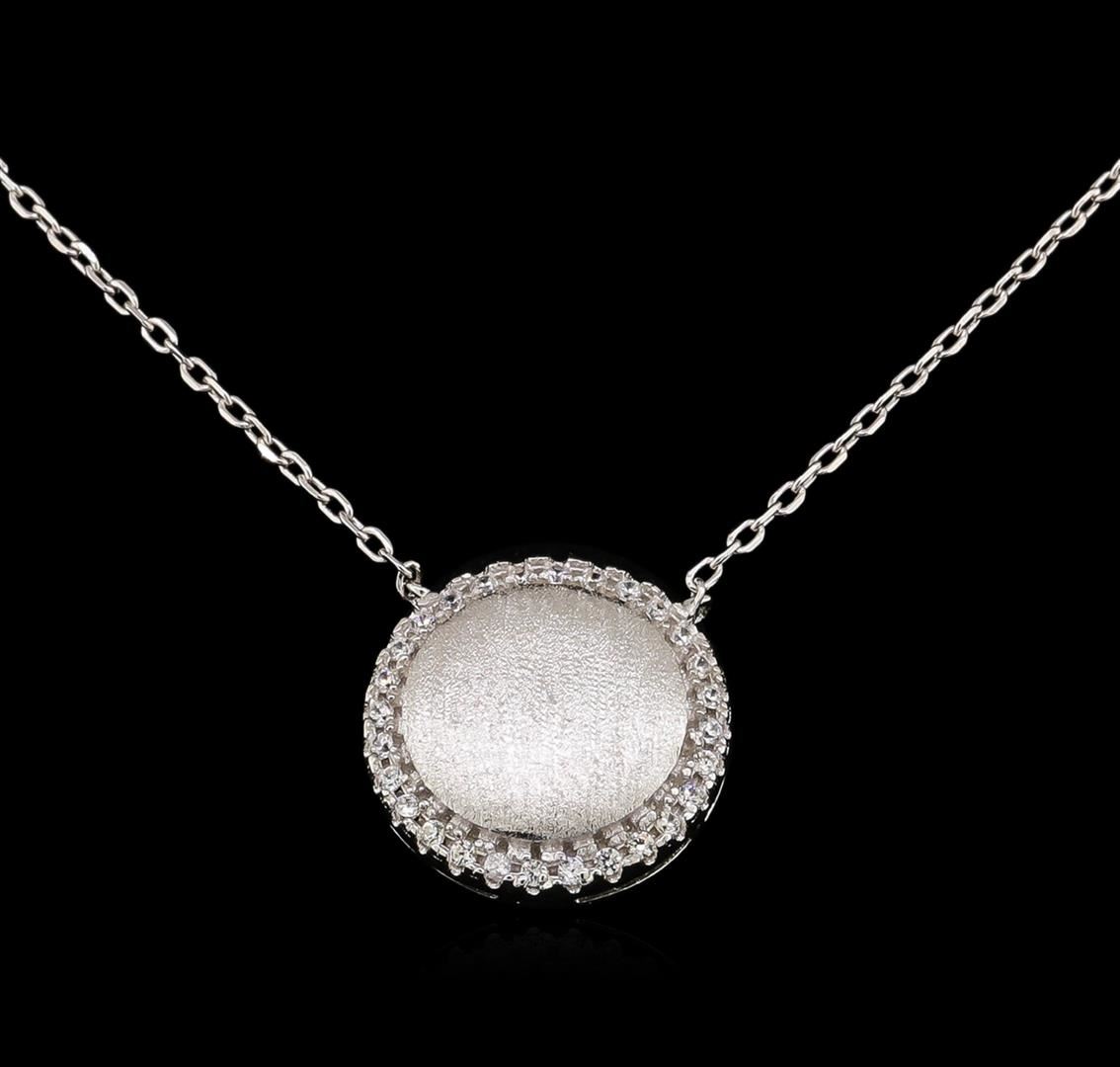 One of a kind high fashion sterling silver Necklace weighing 3.2 grams. Containing: Cubic Zirconia. This sterling silver promises a lasting shine.