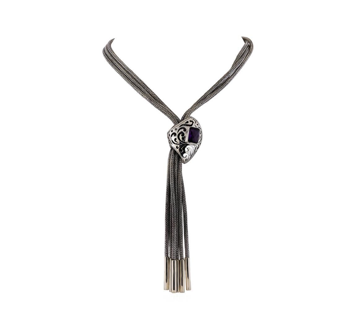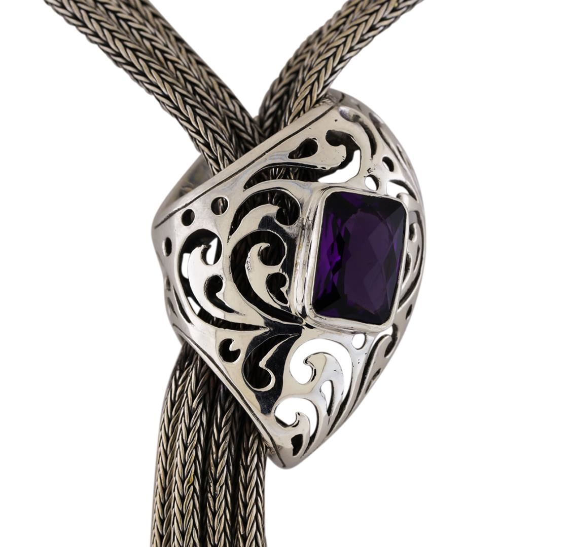 One of a kind high fashion sterling silver Necklace weighing 139.9 grams. Containing: Amethyst. This sterling silver promises a lasting shine.
