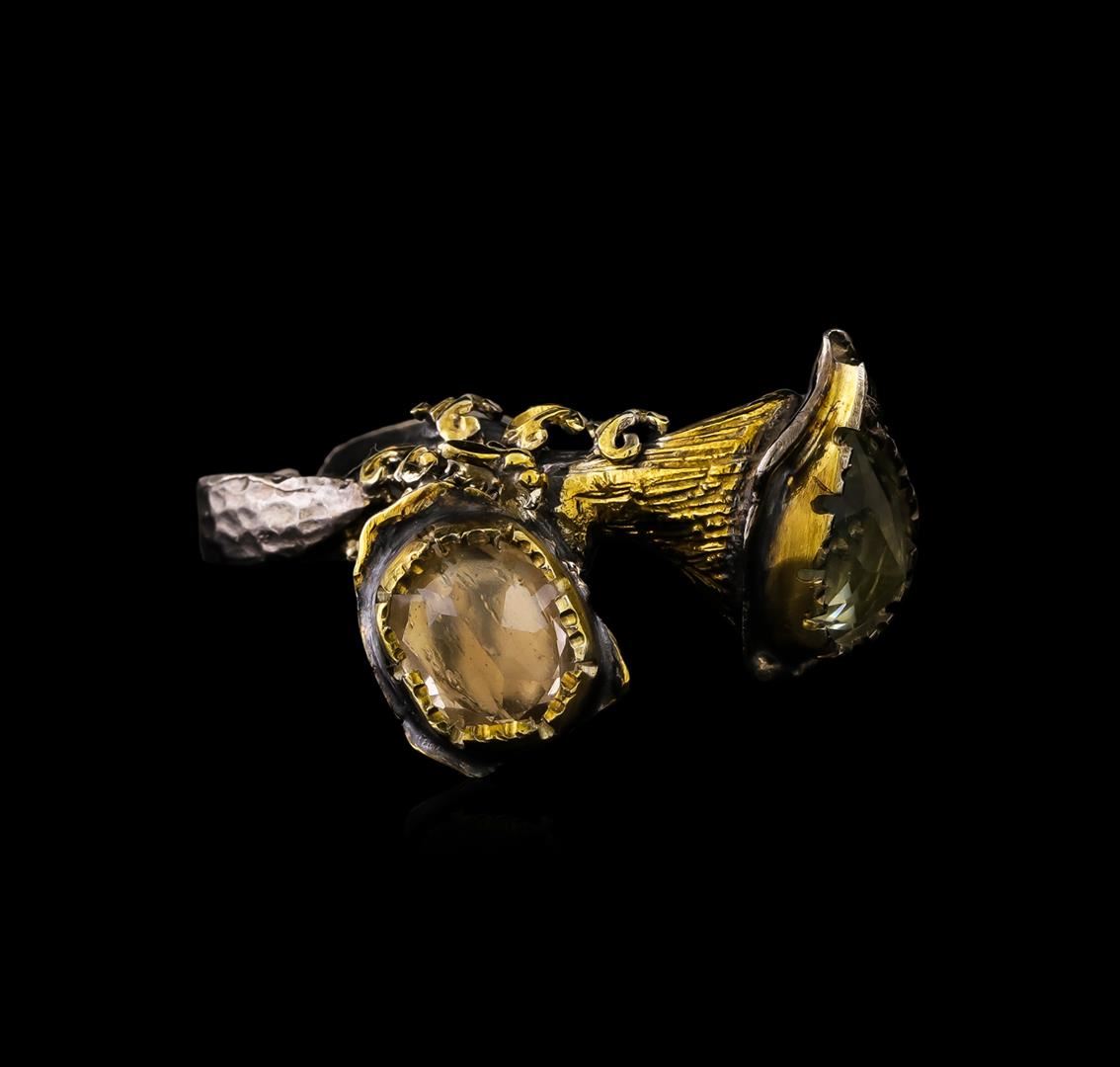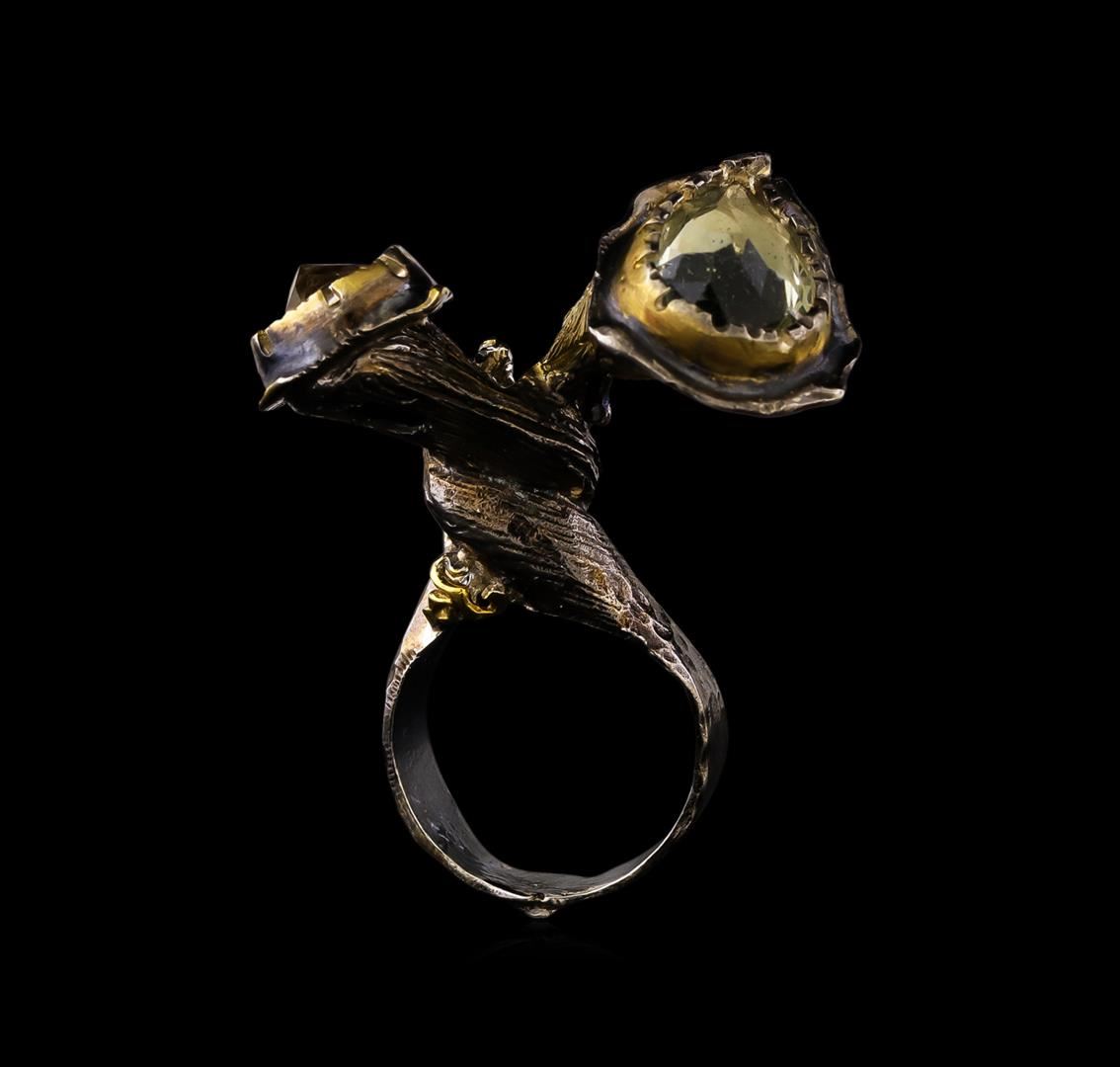 One of a kind high fashion sterling silver Ring weighing 22.6 grams. Black Antique texture. Containing: Peach Quartz, Green Quartz. This sterling silver promises a lasting shine.