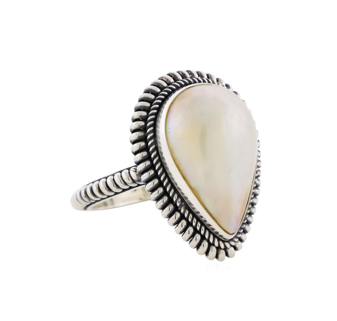One of a kind high fashion sterling silver Ring weighing 5.1 grams. Containing: Mabe Pearl. This sterling silver promises a lasting shine.