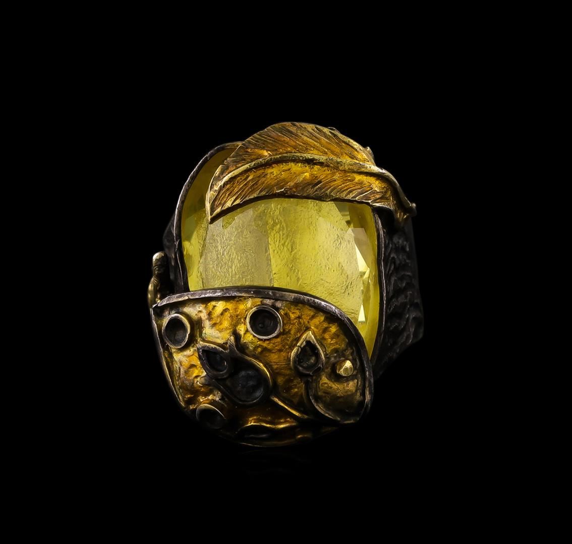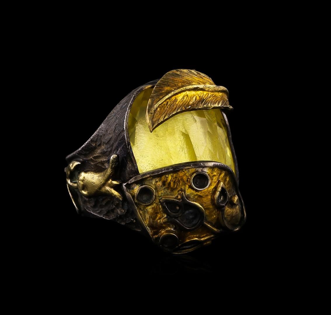 One of a kind high fashion sterling silver Ring weighing 15.7 grams. Containing: Lemon Quartz. This sterling silver promises a lasting shine.
