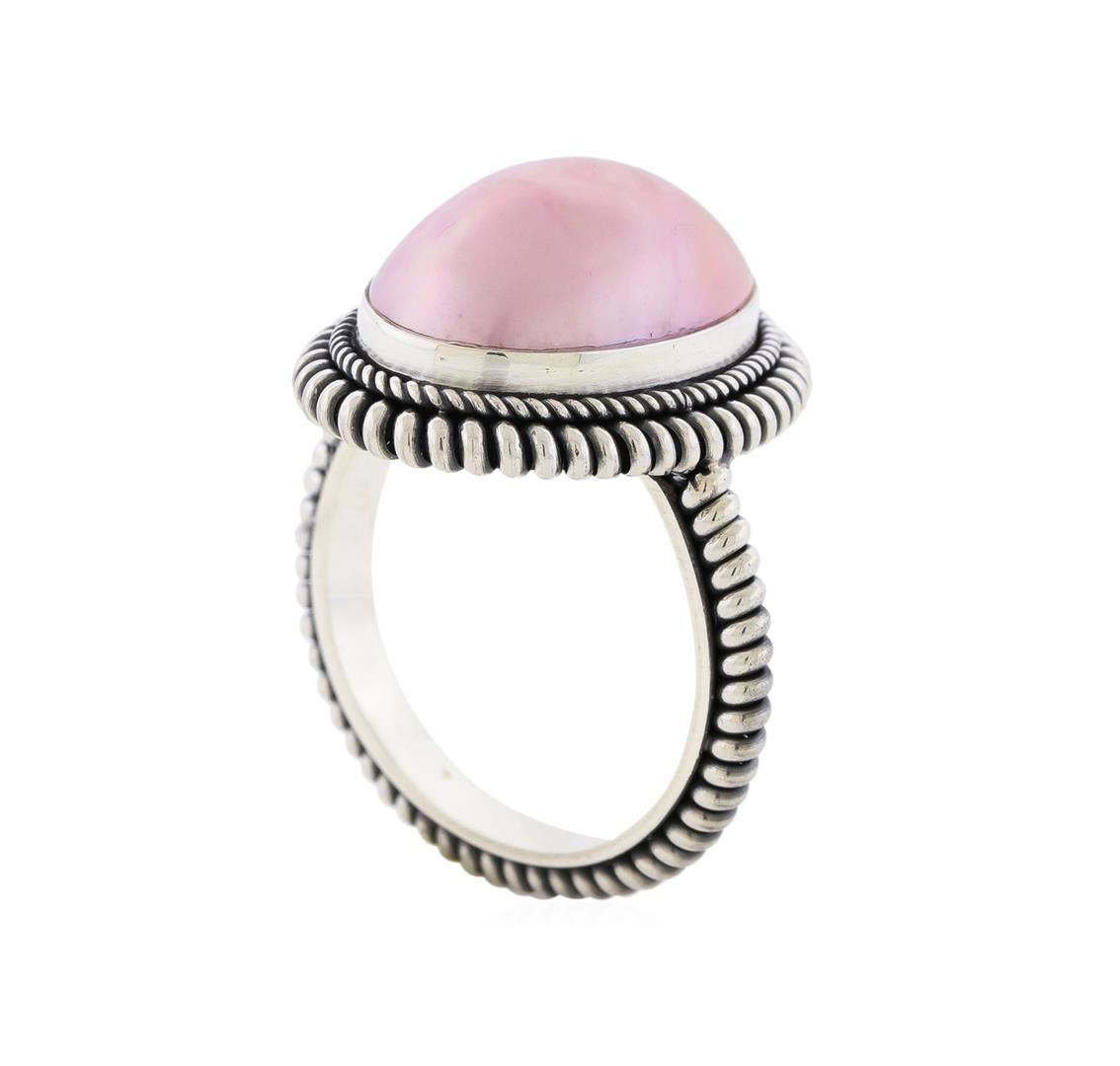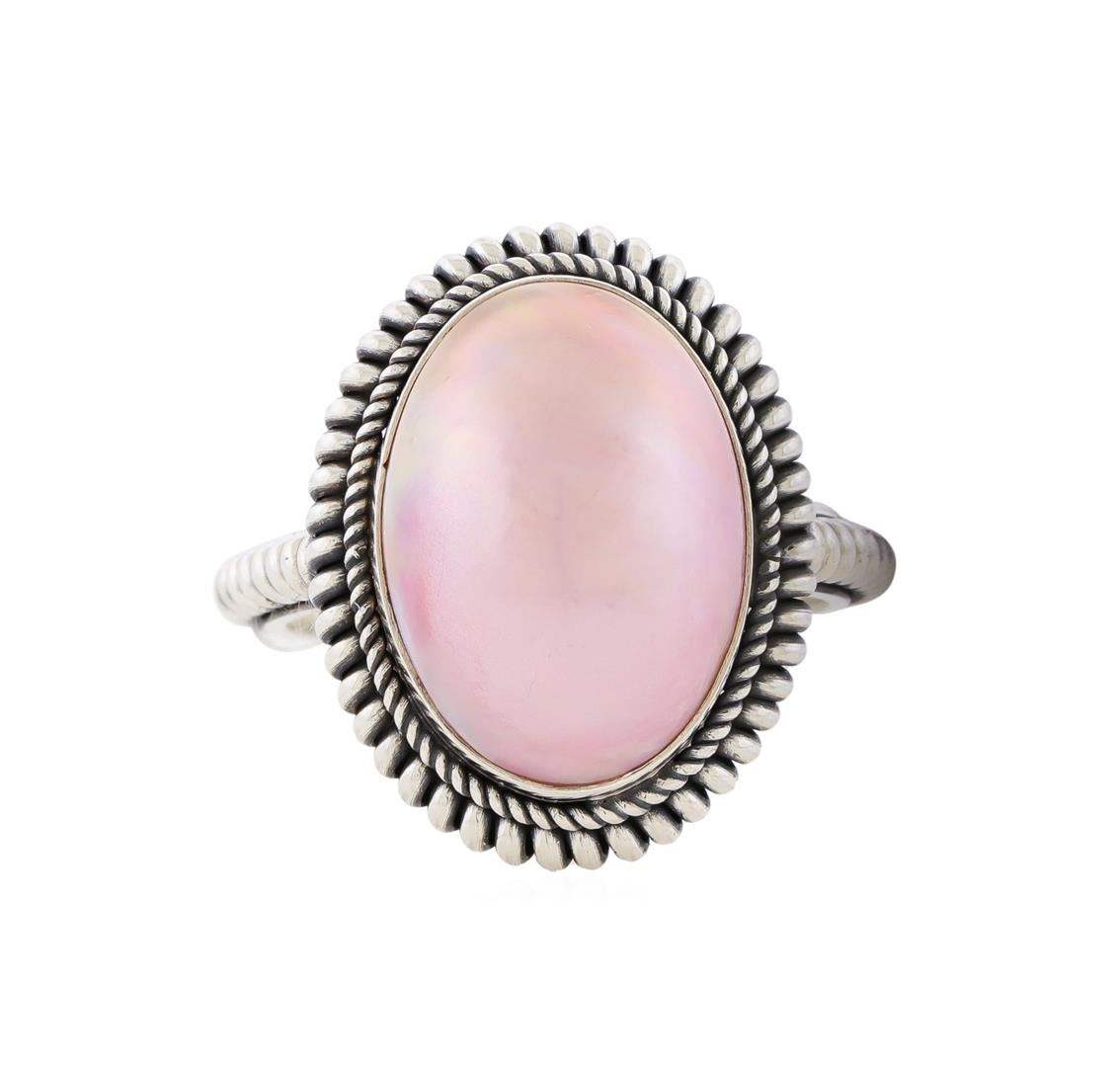 One of a kind high fashion sterling silver Ring weighing 4.8 grams. Containing: Dyed Pink Mabe Pearl. This sterling silver promises a lasting shine.