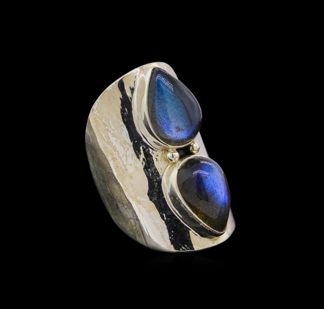 One of a kind high fashion sterling silver Ring weighing 16.1 grams. Containing: Labradorite. This sterling silver promises a lasting shine.