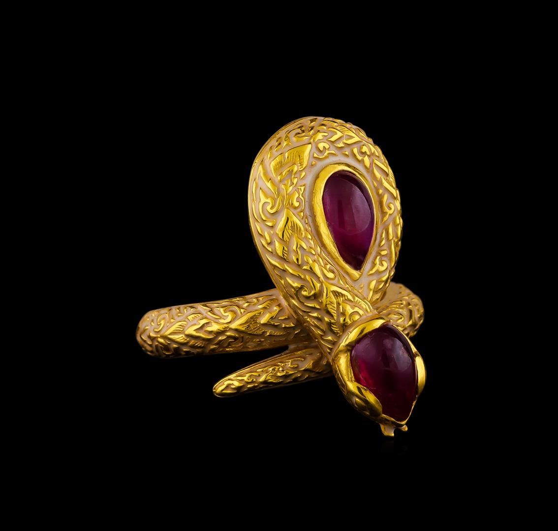 One of a kind high fashion sterling silver Ring weighing 9.7 grams. Containing: Ruby, White Enamel Inlay. This sterling silver promises a lasting shine.