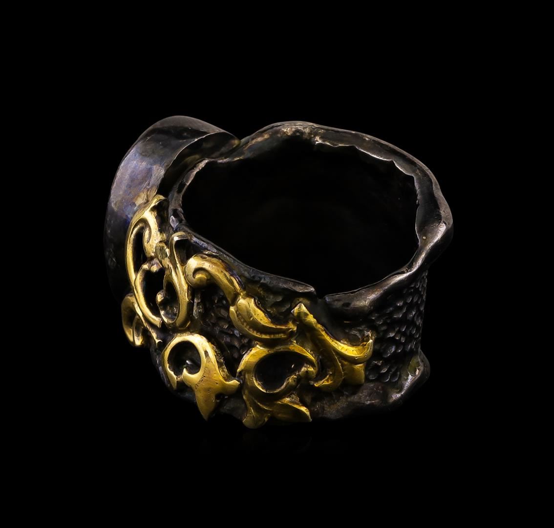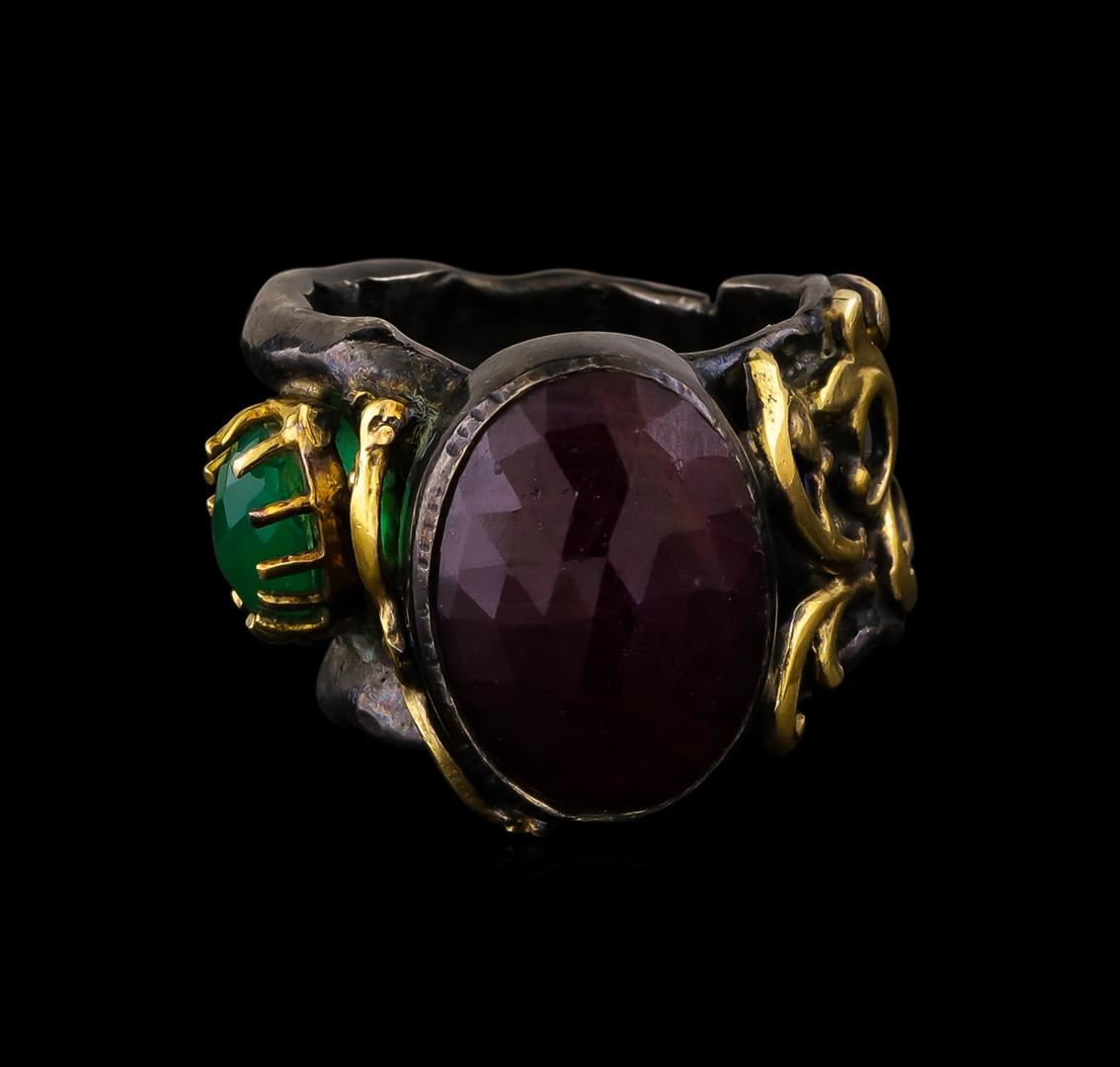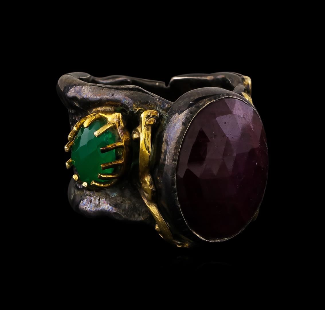 One of a kind high fashion sterling silver Ring weighing 20.3 grams. Black Antique texture. Containing: Green Chalcedony. This sterling silver promises a lasting shine.