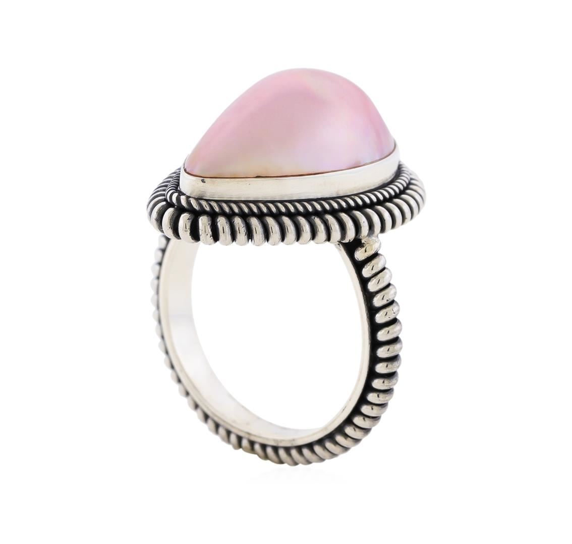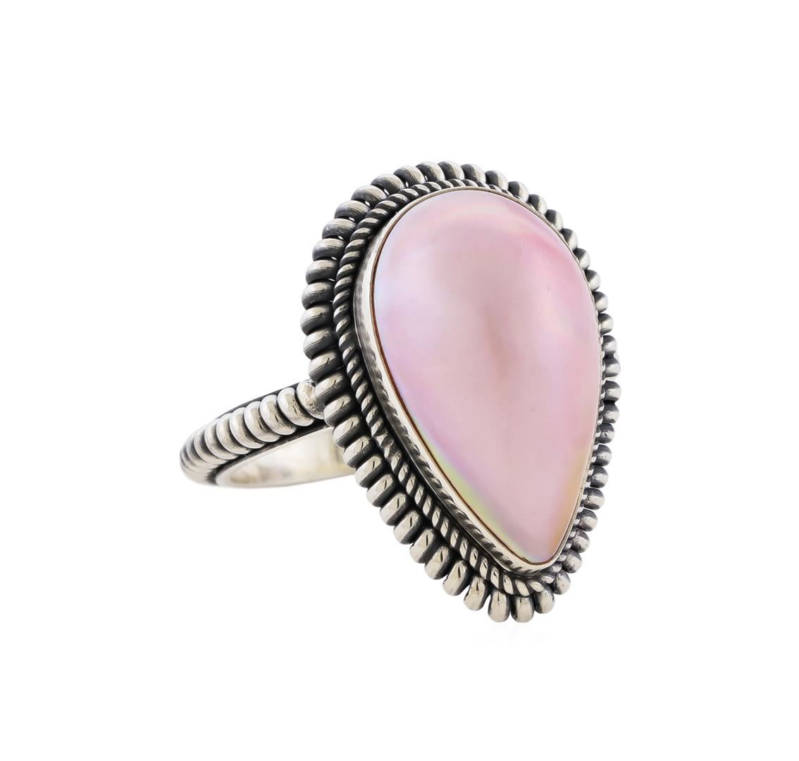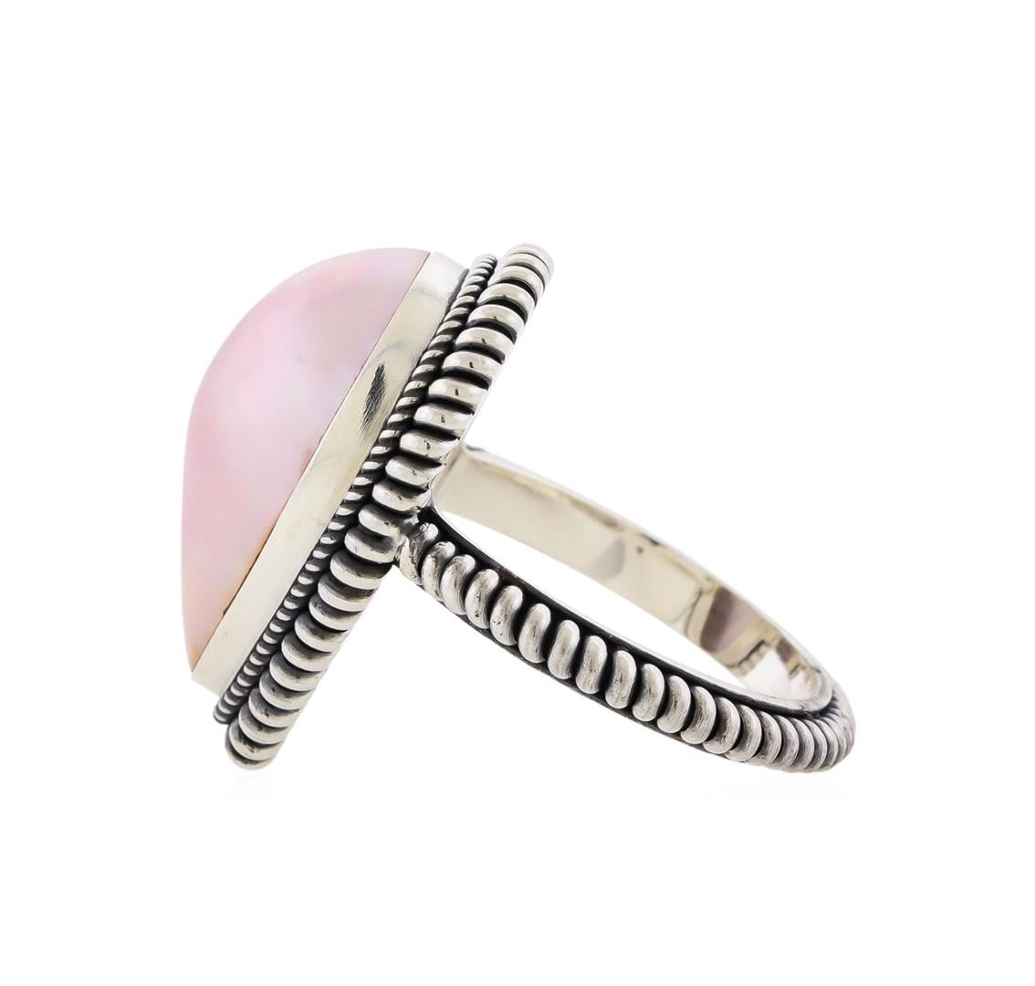 One of a kind high fashion sterling silver Ring weighing 5.1 grams. Containing: Dyed Pink Mabe Pearl. This sterling silver promises a lasting shine.