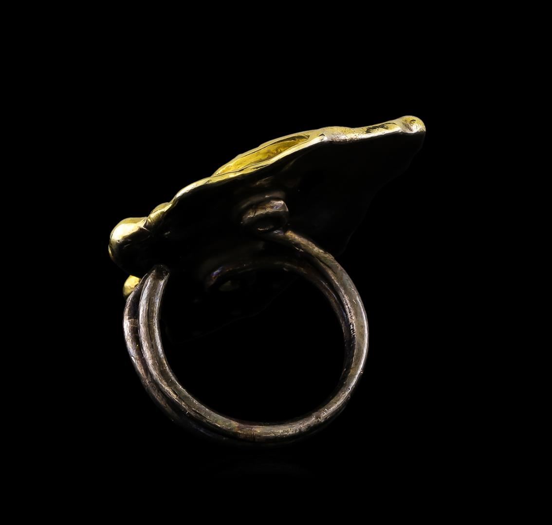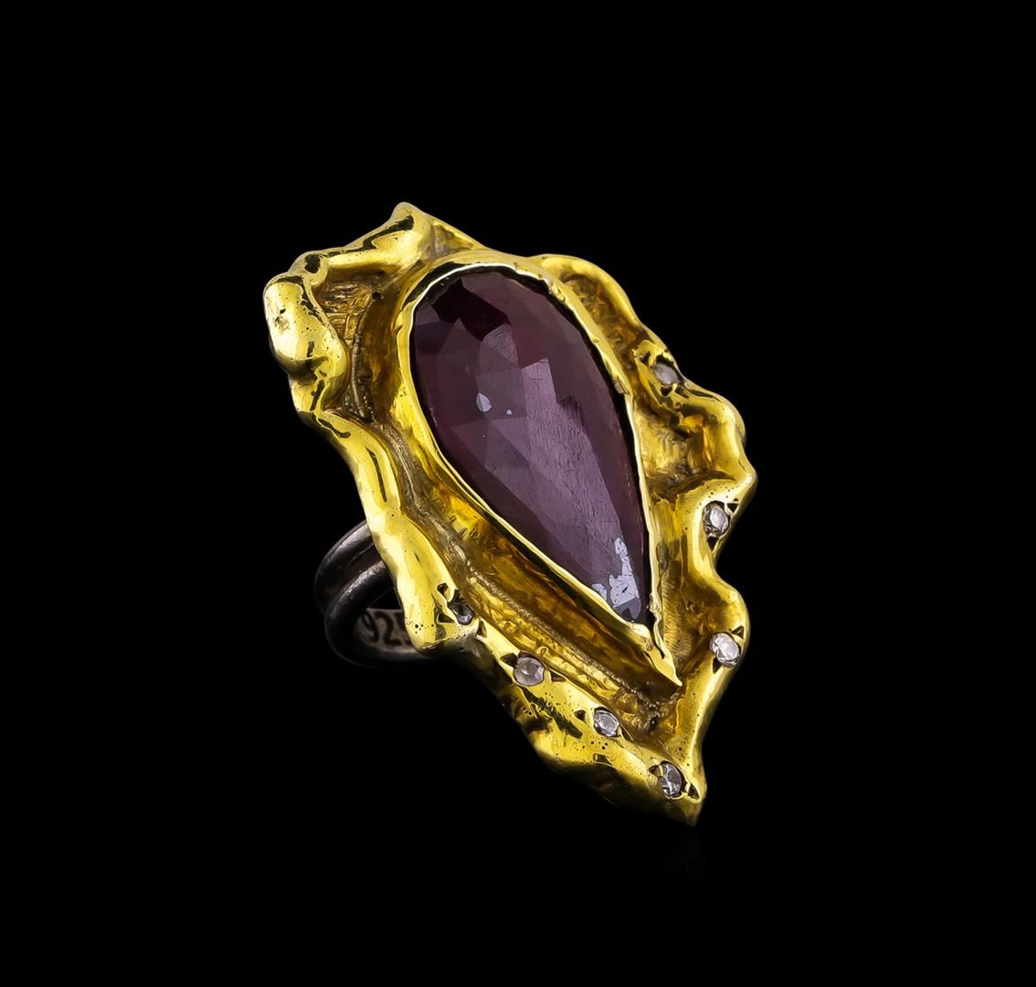 One of a kind high fashion sterling silver Ring weighing 11 grams. Black Antique texture. Containing: Corundum, White Crystal. This sterling silver promises a lasting shine.