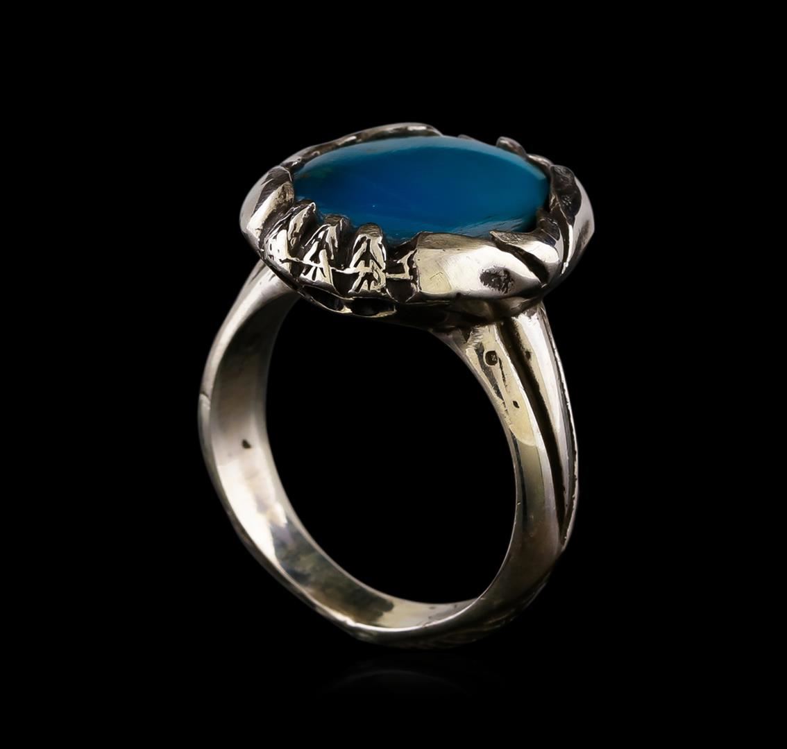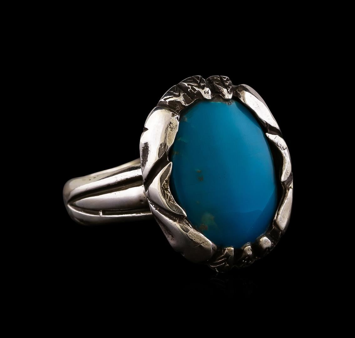 One of a kind high fashion sterling silver Ring weighing 11 grams. Containing: Created Turquoise. This sterling silver promises a lasting shine.
