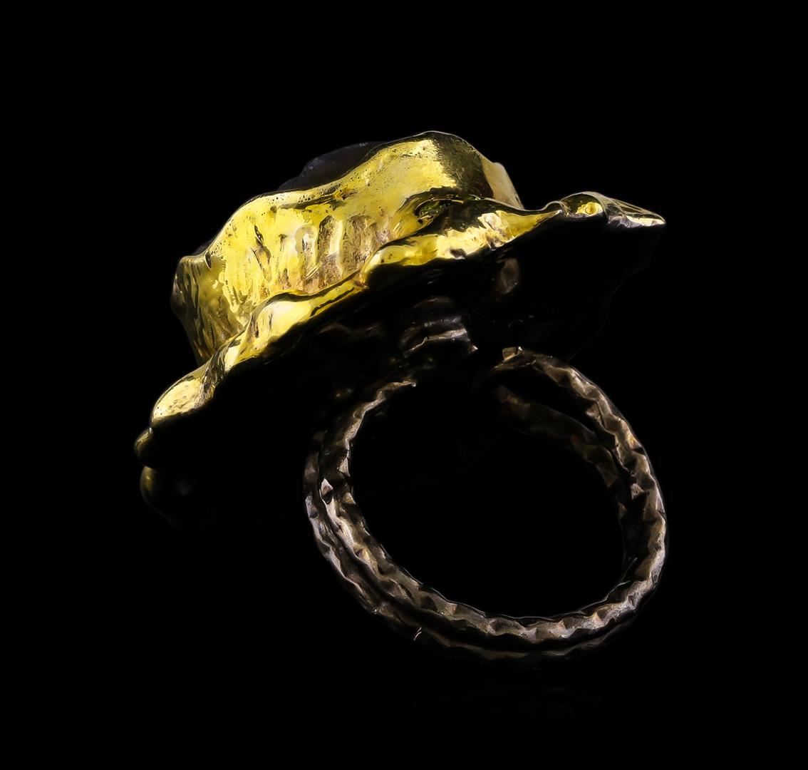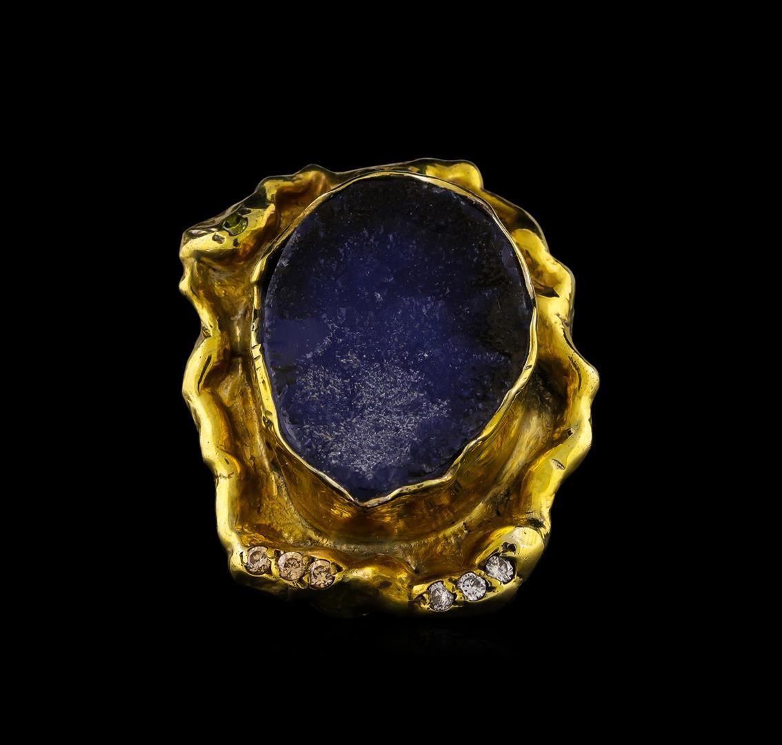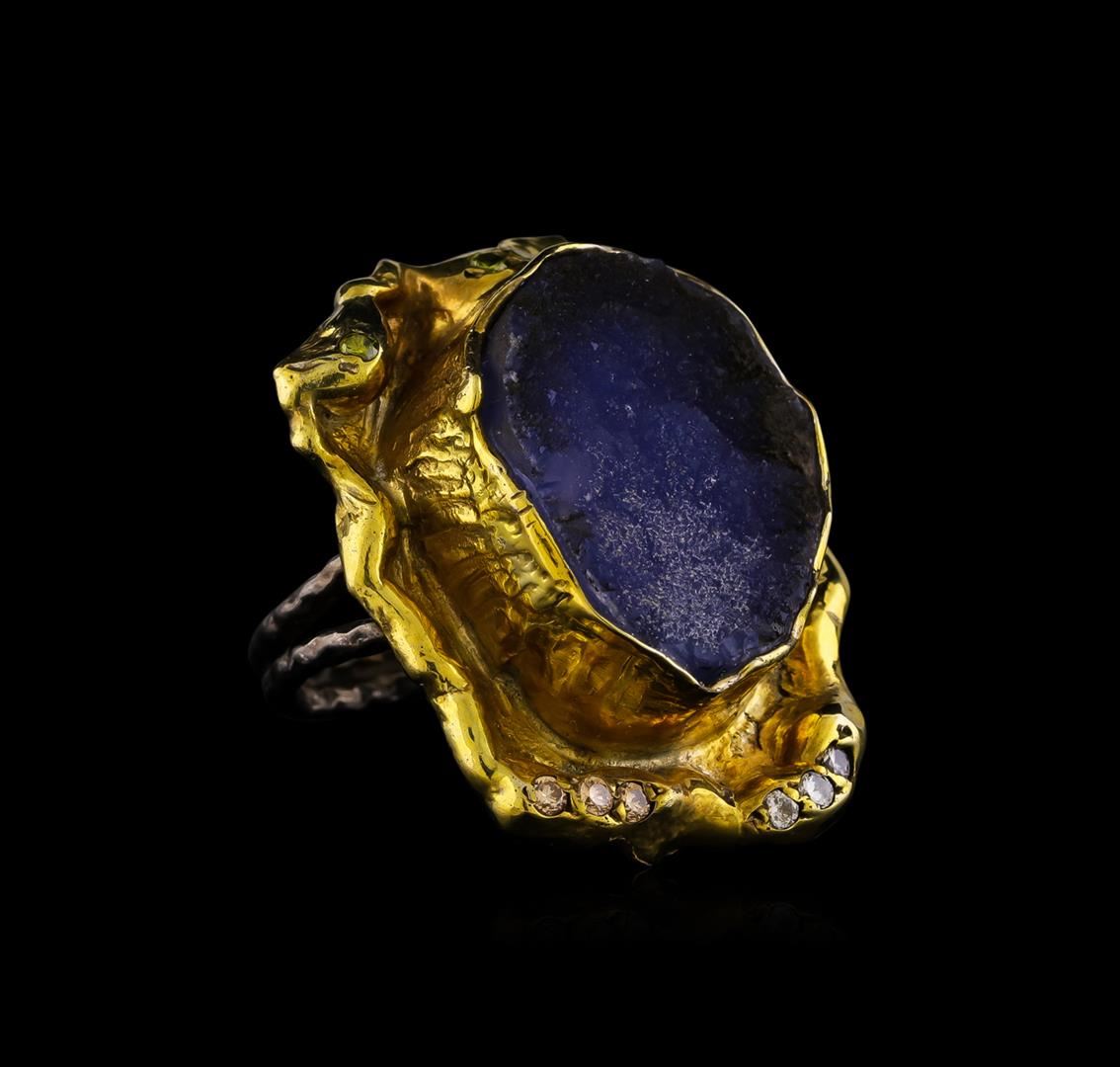 One of a kind high fashion sterling silver Ring weighing 22.1 grams. Black Antique texture. Containing: Crystal Blue Lace Agate, White Crystal, Yellowish Green Crystal, Light Brown Crystal. This sterling silver promises a lasting shine.