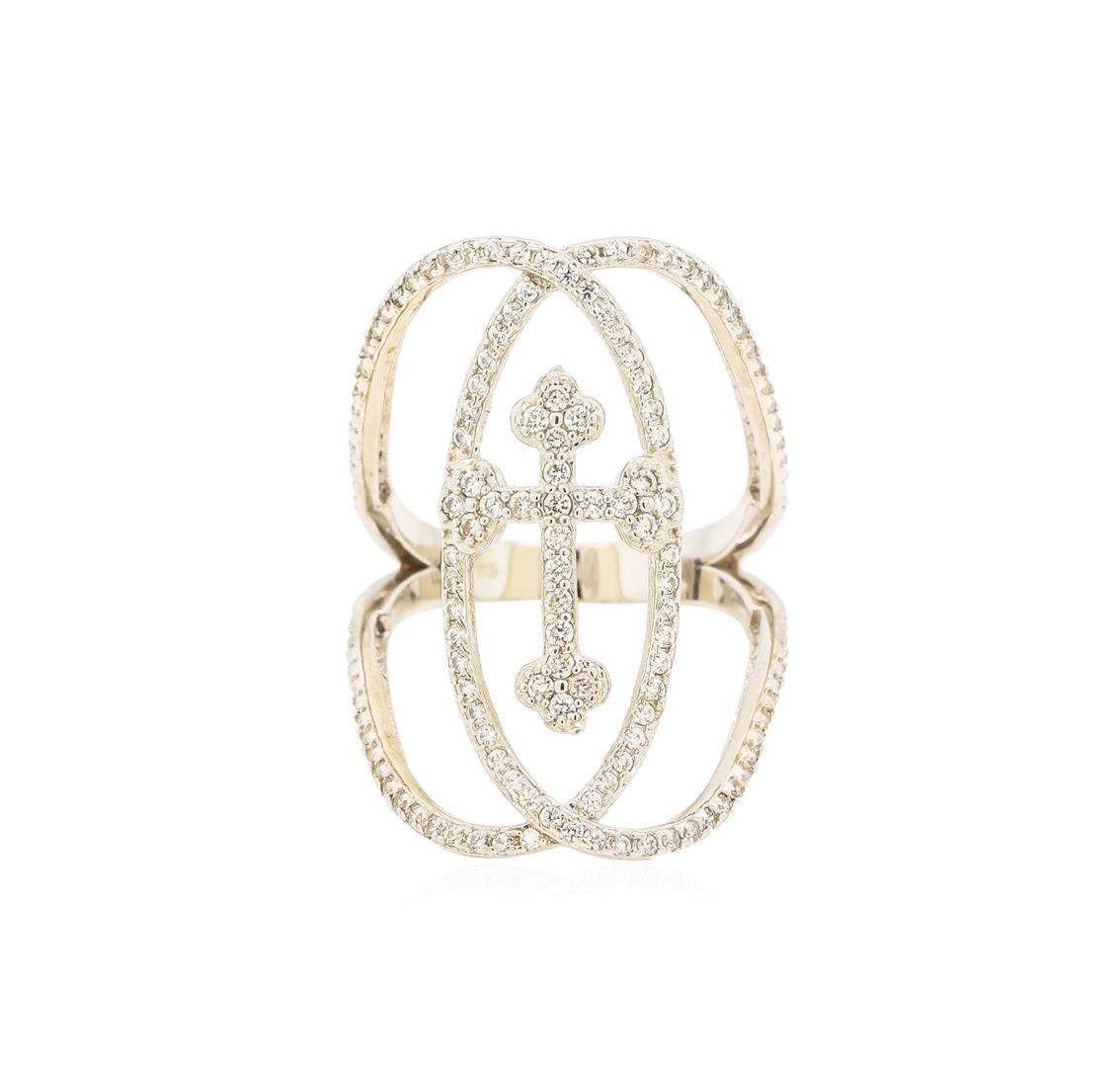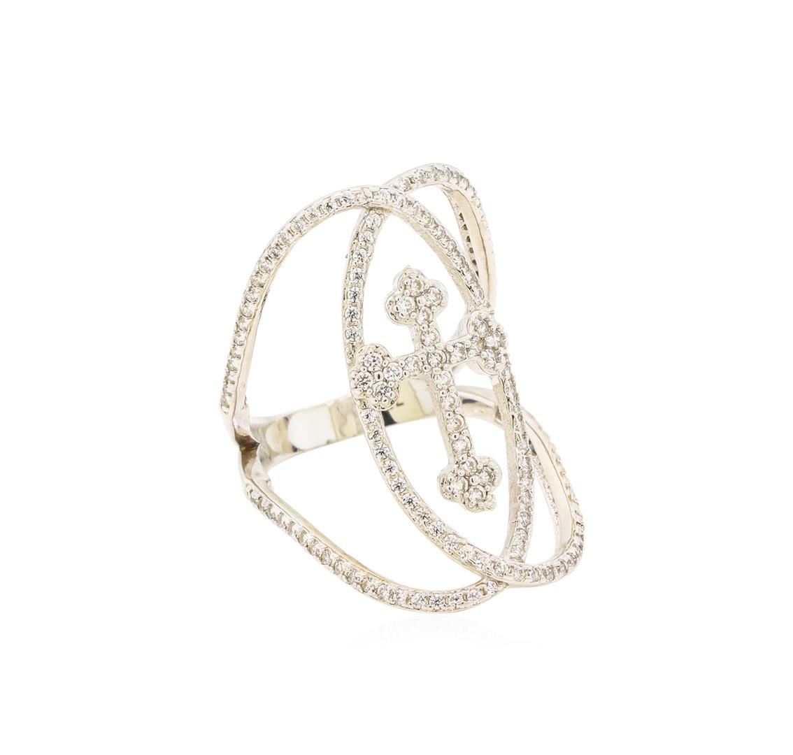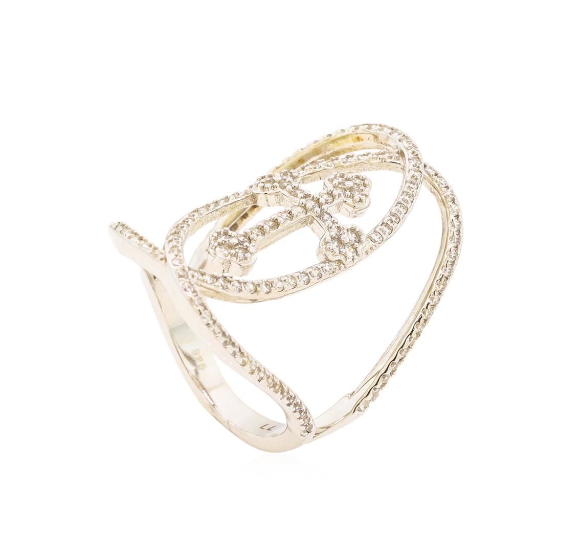 One of a kind high fashion sterling silver Ring weighing 4.7 grams. Containing: Cubic Zirconia. This sterling silver promises a lasting shine.