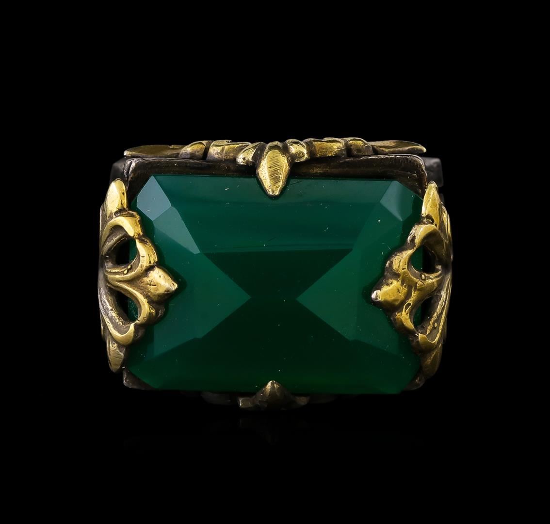 One of a kind high fashion sterling silver Ring weighing 18.7 grams. Black Antique texture. Containing: Green Crystal. This sterling silver promises a lasting shine.