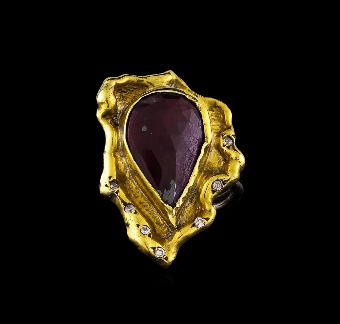 One of a kind high fashion sterling silver Ring weighing 11 grams. Black Antique texture. Containing: Corundum, White Crystal. This sterling silver promises a lasting shine.