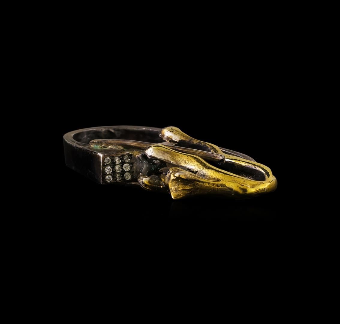 One of a kind high fashion sterling silver Ring weighing 11.8 grams. Containing: White Crystal, Blue Crystal. This sterling silver promises a lasting shine.