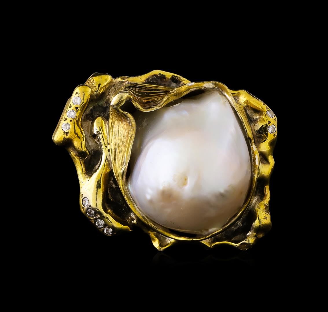 One of a kind high fashion sterling silver Ring weighing 25.5 grams. Black Antique texture. Containing: Freshwater Pearl, White Crystal. This sterling silver promises a lasting shine.