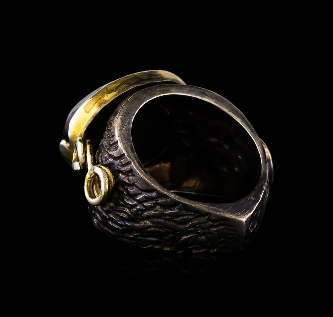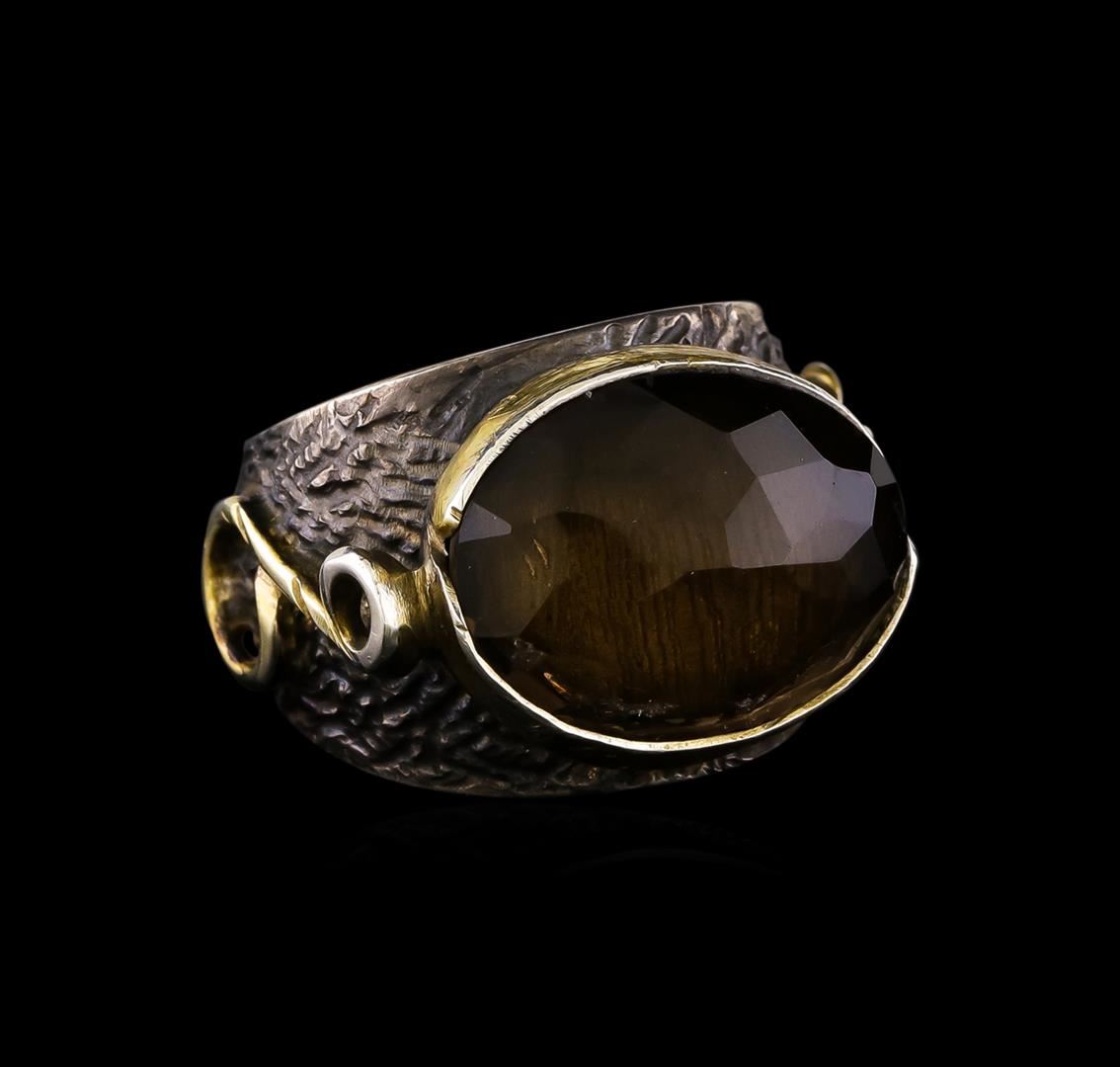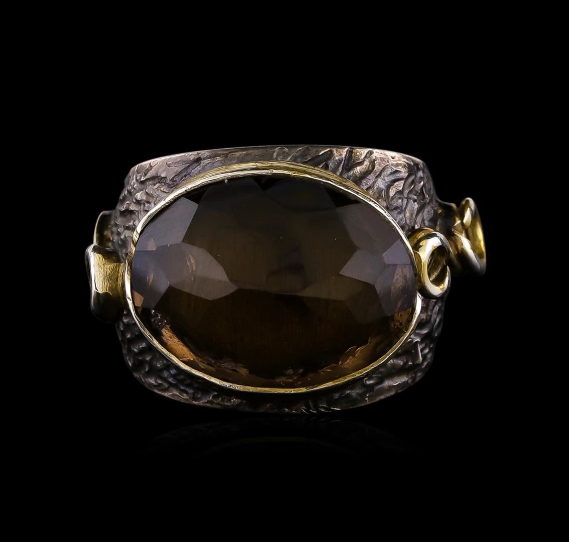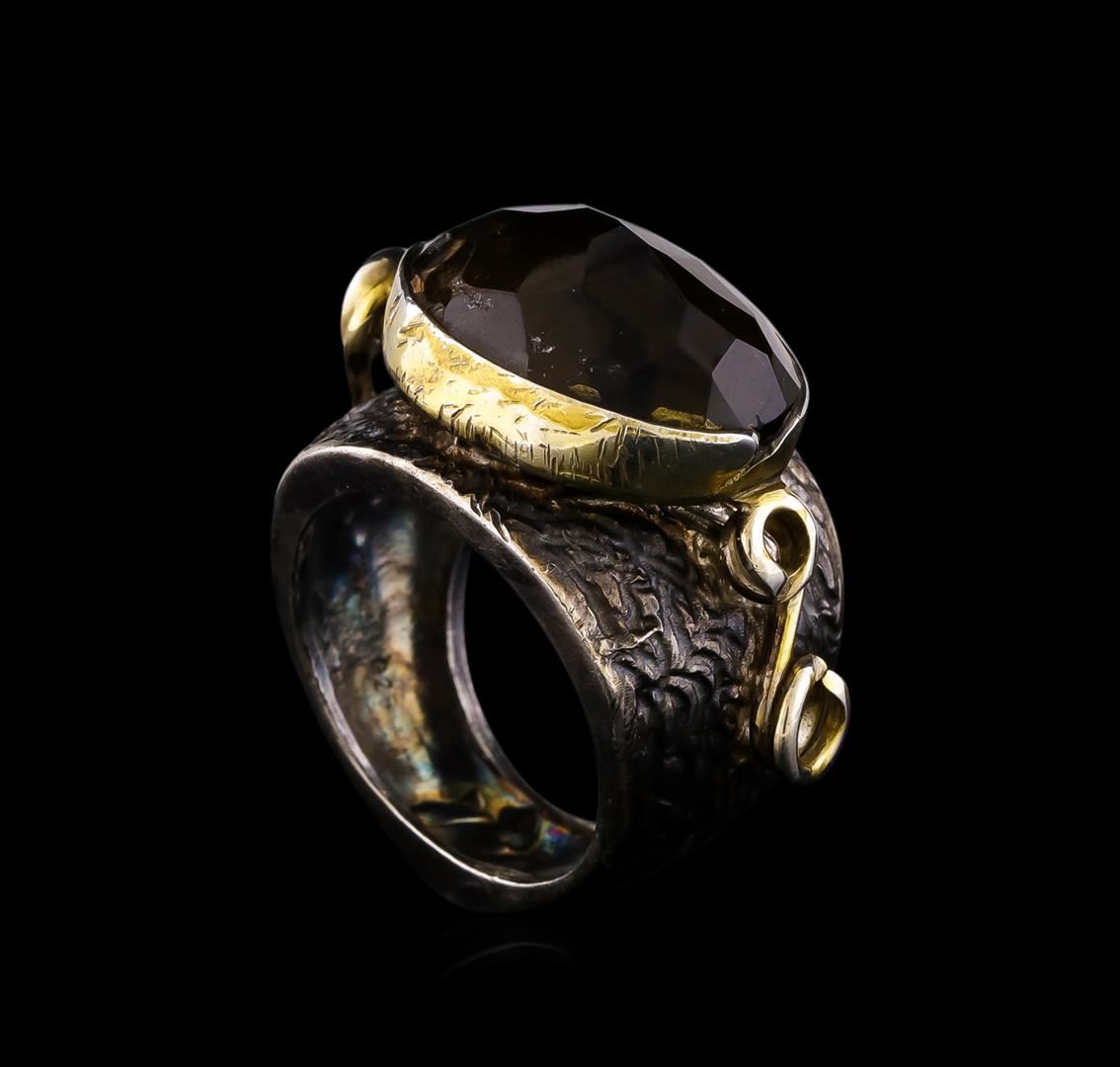 One of a kind high fashion sterling silver Ring weighing 16.1 grams. Black Antique texture. Containing: Smoky Quartz. This sterling silver promises a lasting shine.