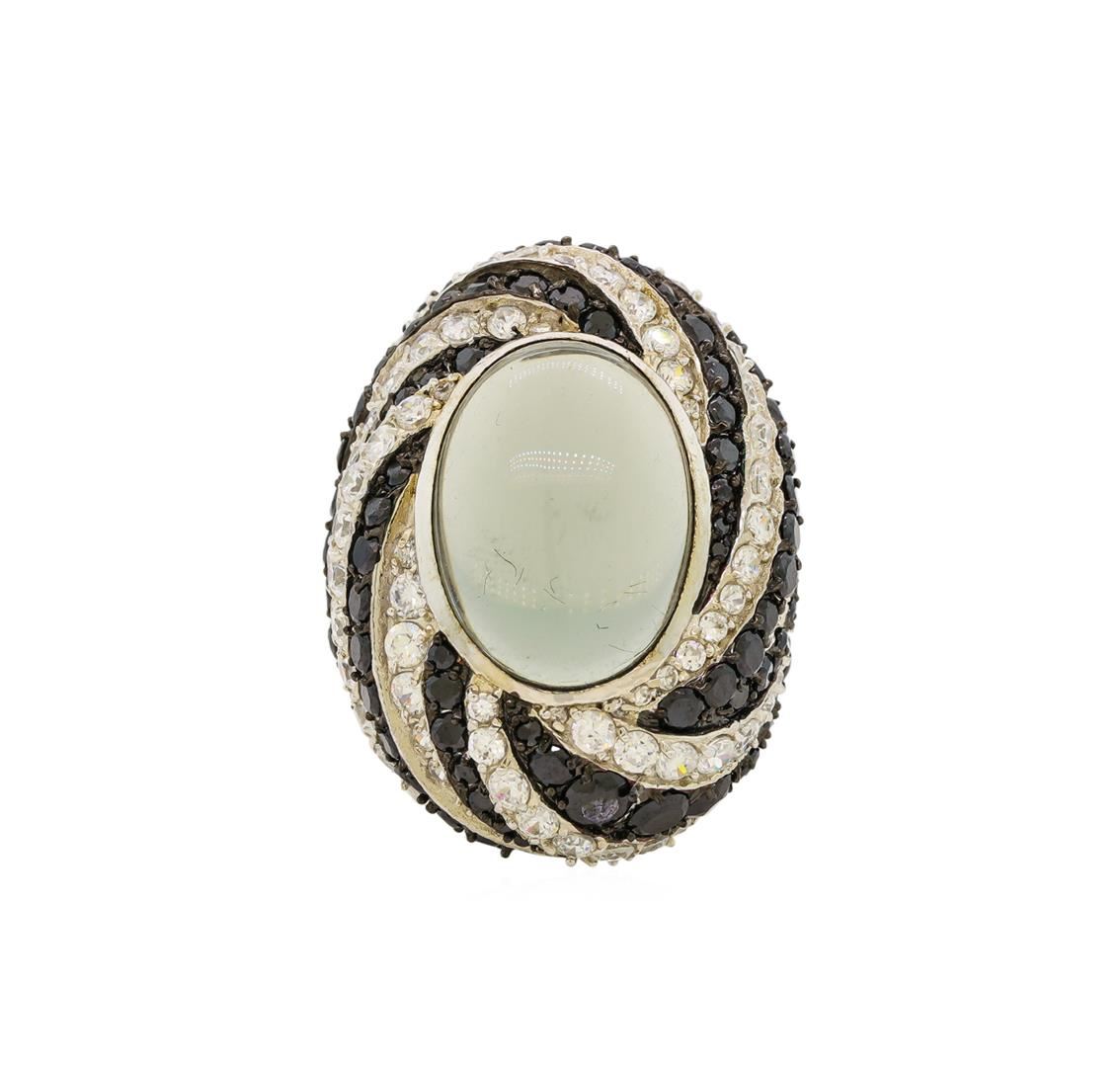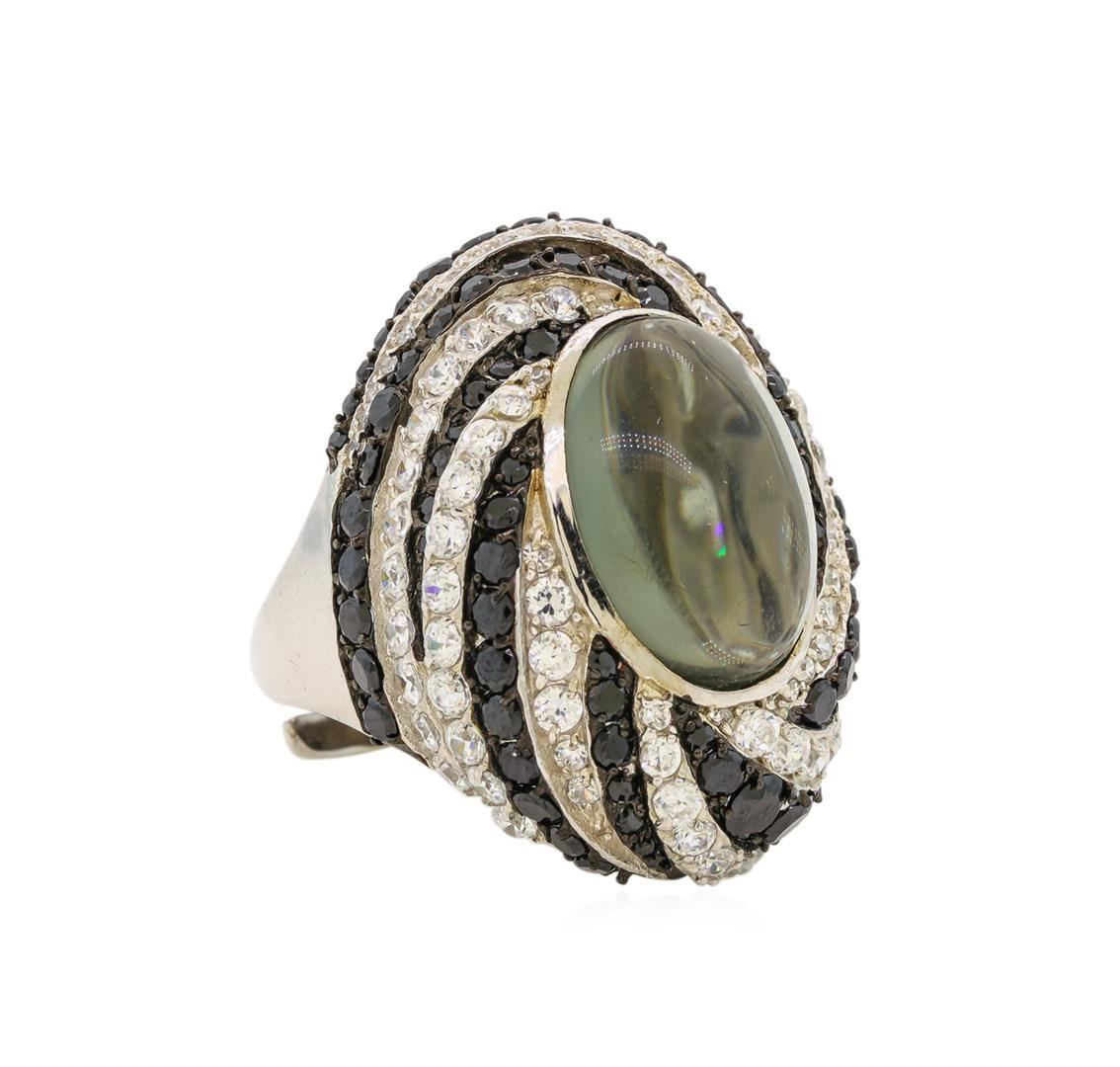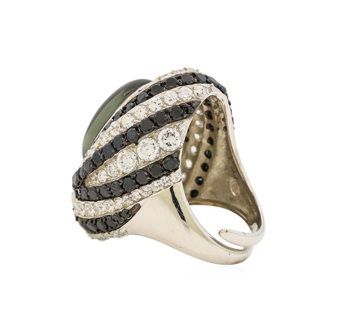 One of a kind high fashion sterling silver Ring weighing 16.8 grams. Containing: Grey Crystal, Cubic Zirconia, Black Cubic Zirconia. This sterling silver promises a lasting shine.