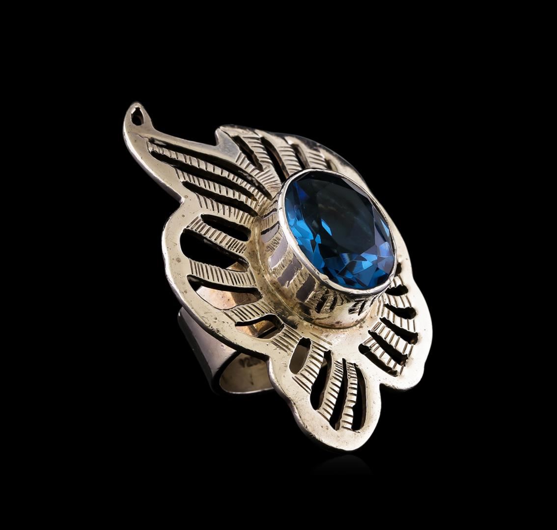One of a kind high fashion sterling silver Ring weighing 20.8 grams. Containing: Blue Crystal. This sterling silver promises a lasting shine.