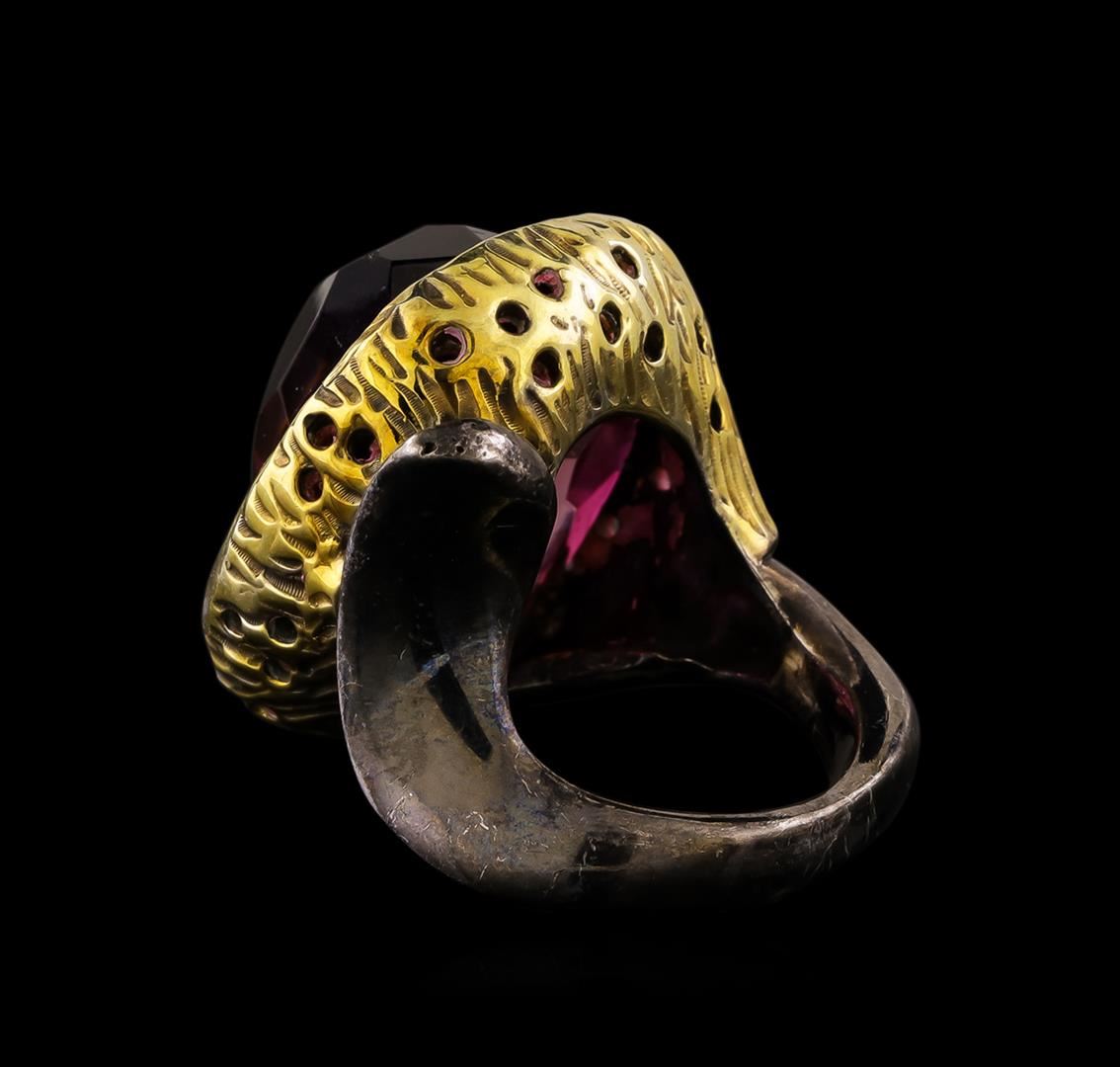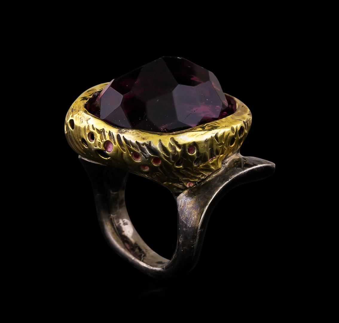 One of a kind high fashion sterling silver Ring weighing 32.8 grams. Black Antique texture. Containing: Purple Crystal. This sterling silver promises a lasting shine.