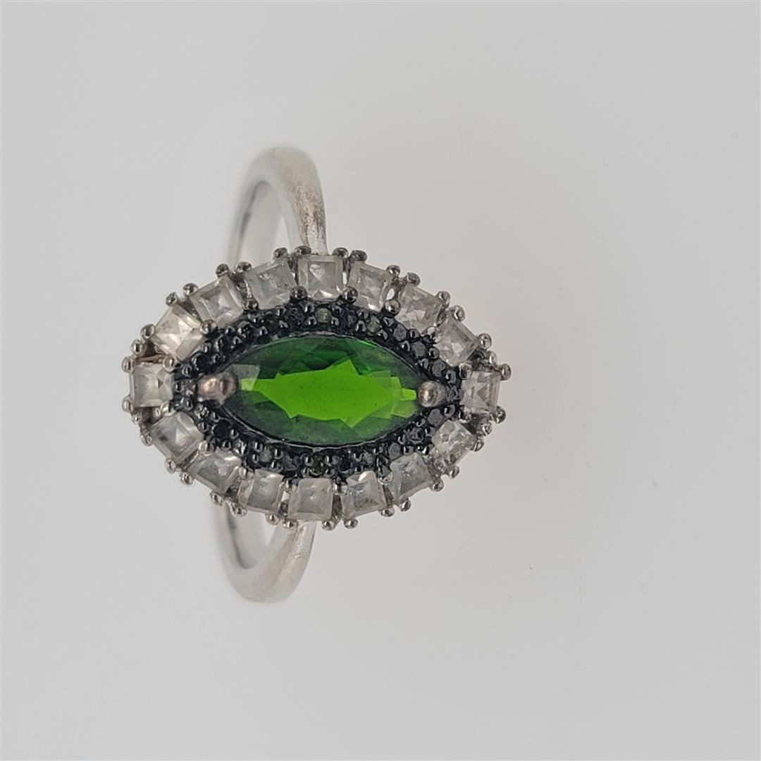 One Sterling Silver Ring. The ring size is 10. Contains semiprecious stones.