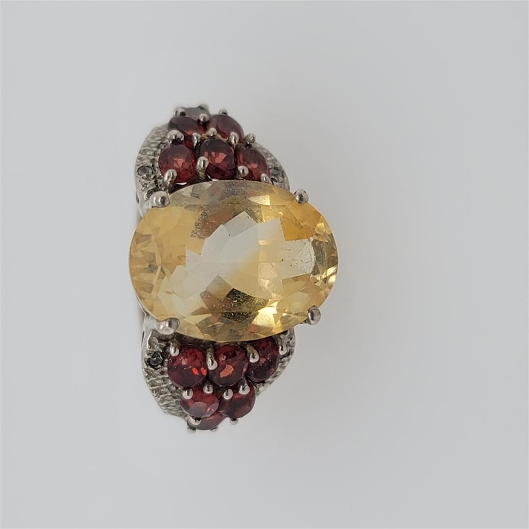 One Sterling Silver Ring. The ring size is 9. Contains semiprecious stones.
