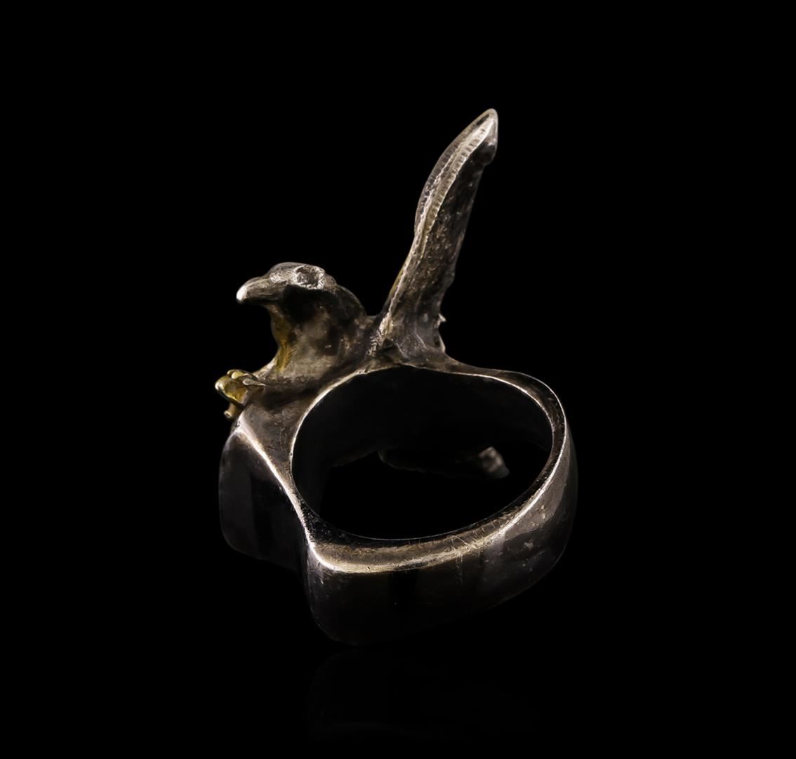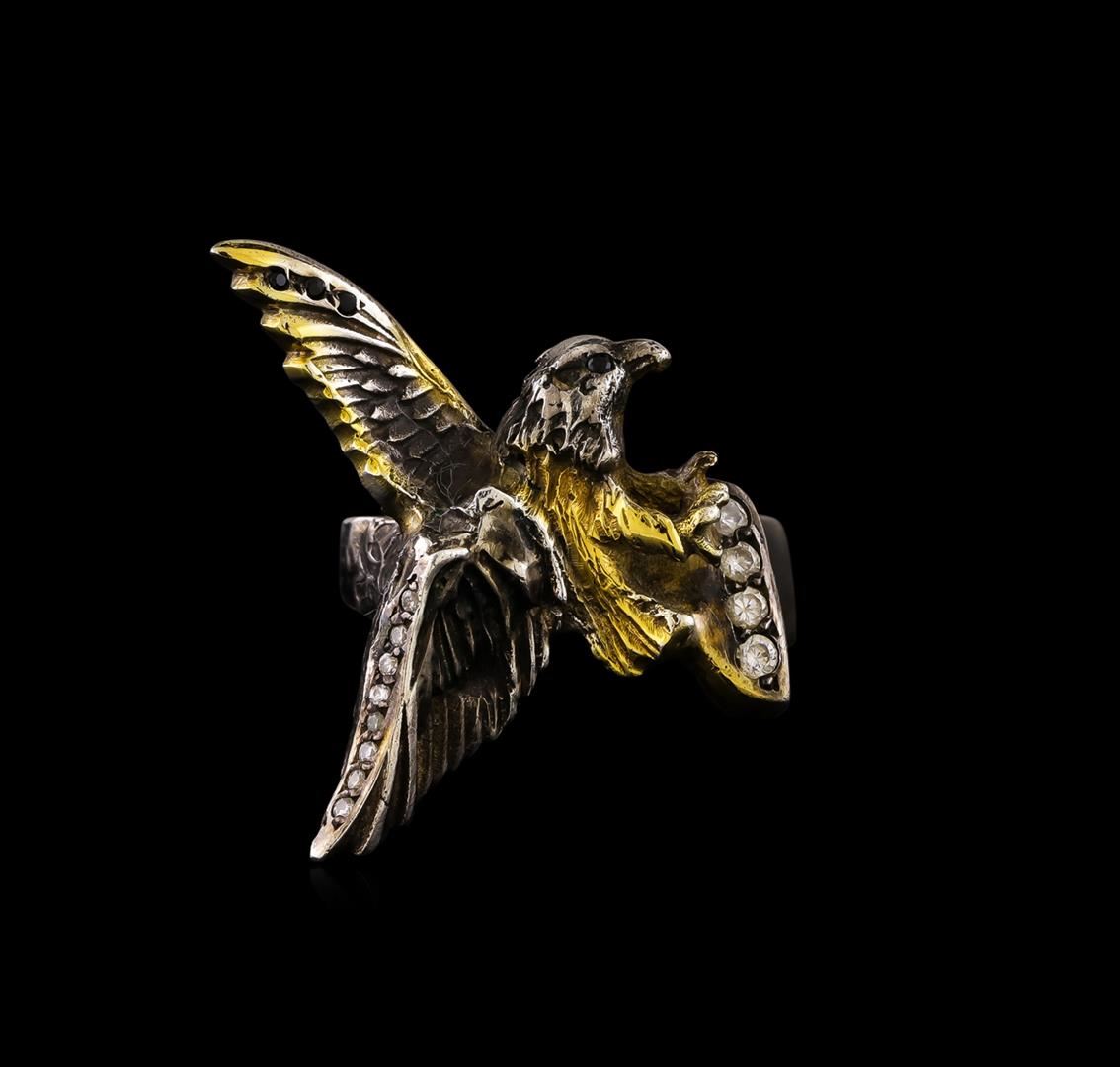 One of a kind high fashion sterling silver Ring weighing 25.2 grams. Containing: White Crystal, Black Crystal. This sterling silver promises a lasting shine.