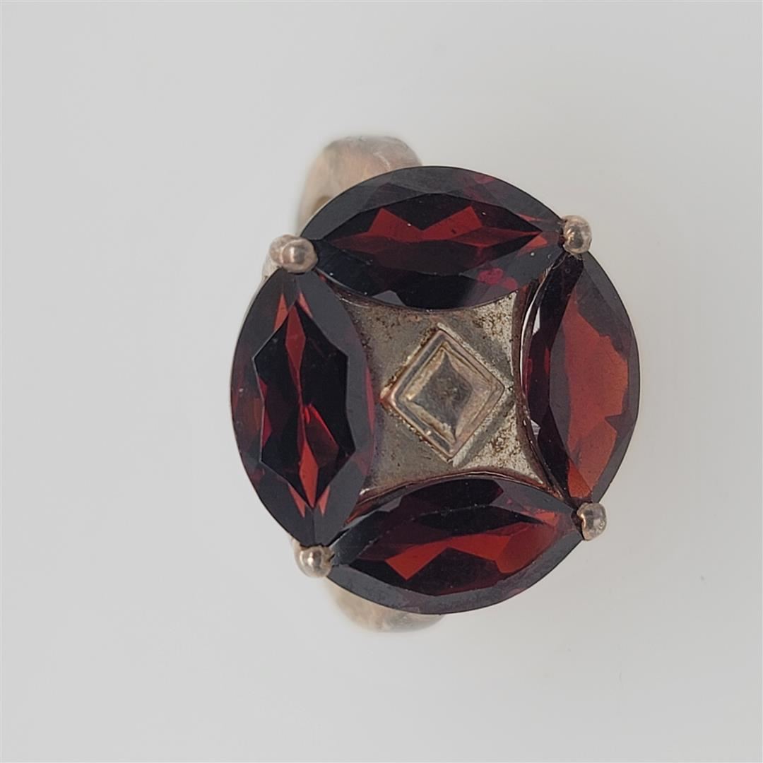 One Sterling Silver Ring. The ring size is 7.5. Contains semiprecious stones.