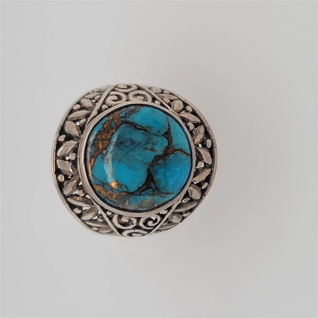 One Sterling Silver Ring. The ring size is 8. Contains semiprecious stones.