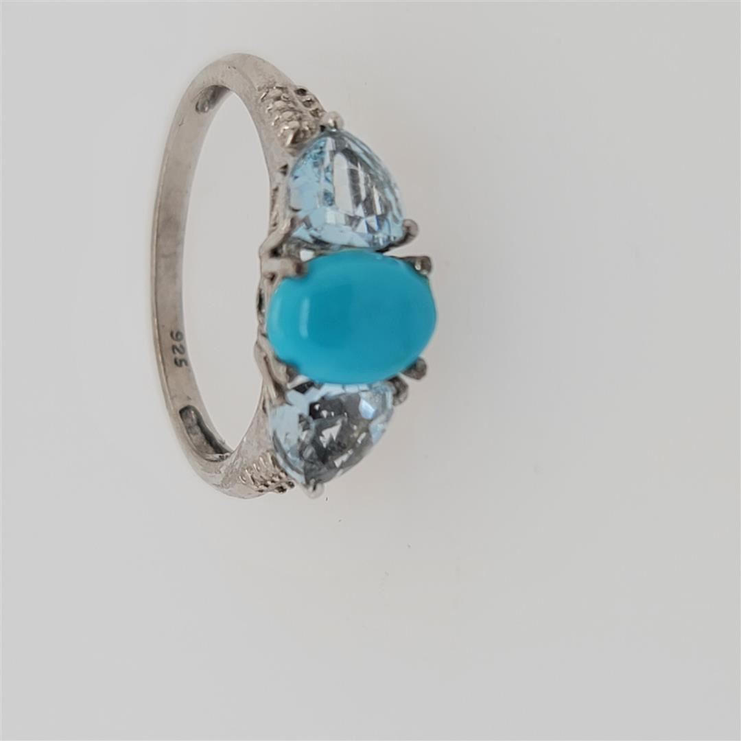 One Sterling Silver Ring. The ring size is 8.25. Contains semiprecious stones.