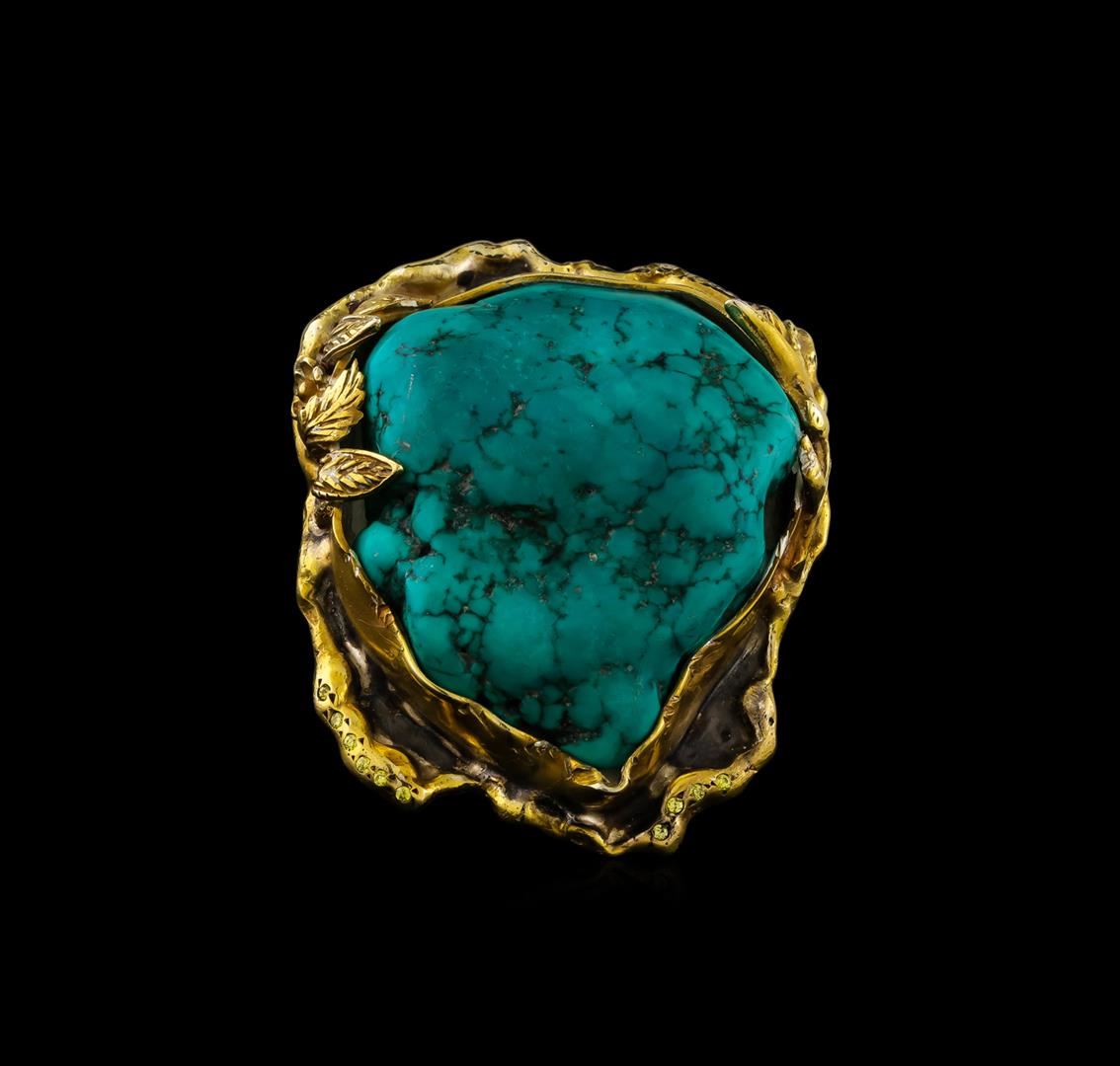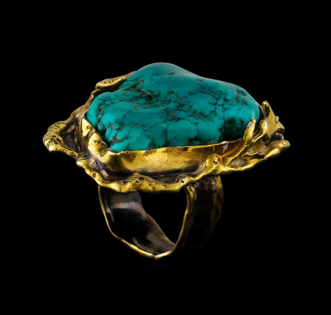 One of a kind high fashion sterling silver Ring weighing 36.1 grams. Containing: Turquoise, Yellow Crystal. This sterling silver promises a lasting shine.