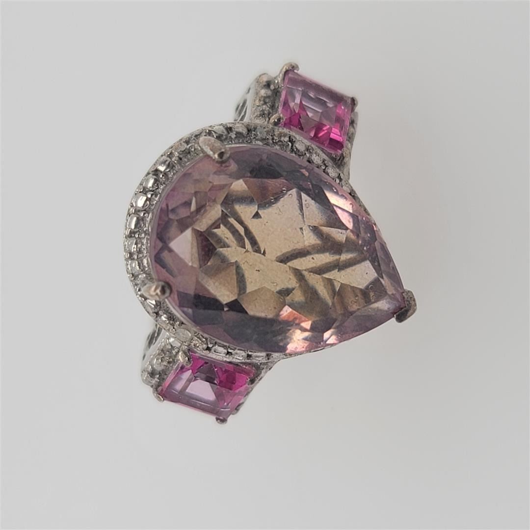 One Sterling Silver Ring. The ring size is 9.5. Contains semiprecious stones.