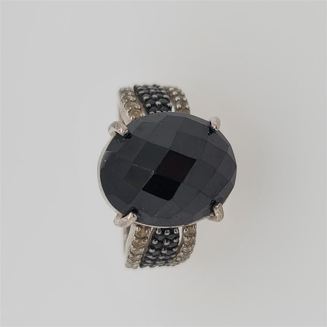 One Sterling Silver Ring. The ring size is 7. Contains semiprecious stones.