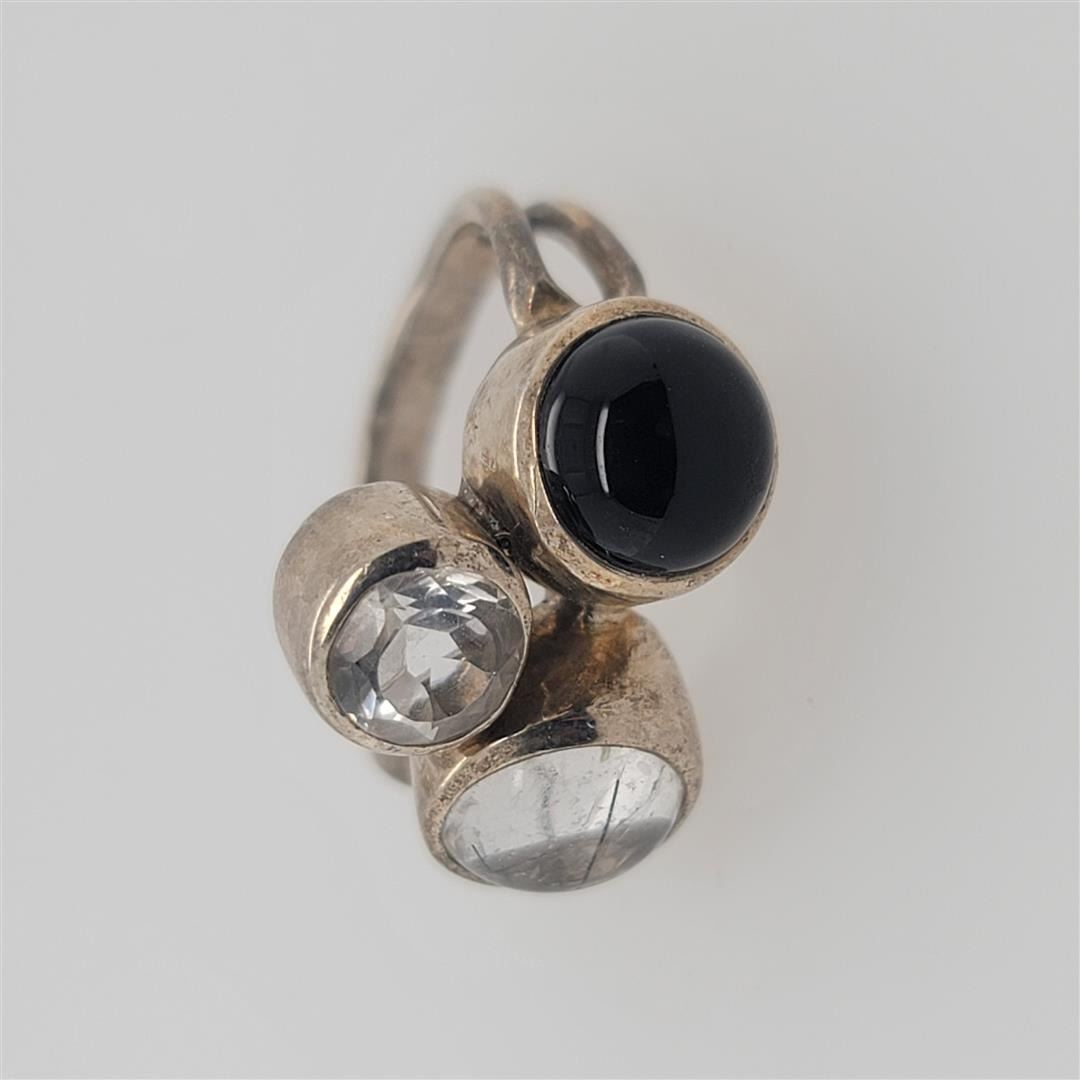 One Sterling Silver Ring. The ring size is 7. Contains semiprecious stones.