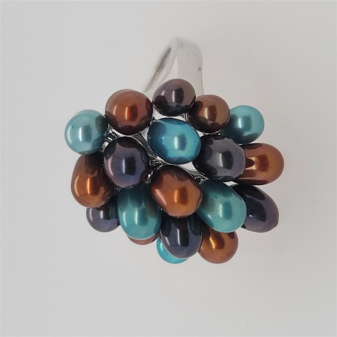 One Sterling Silver Ring. The ring size is 7.25. Contains semiprecious stones.