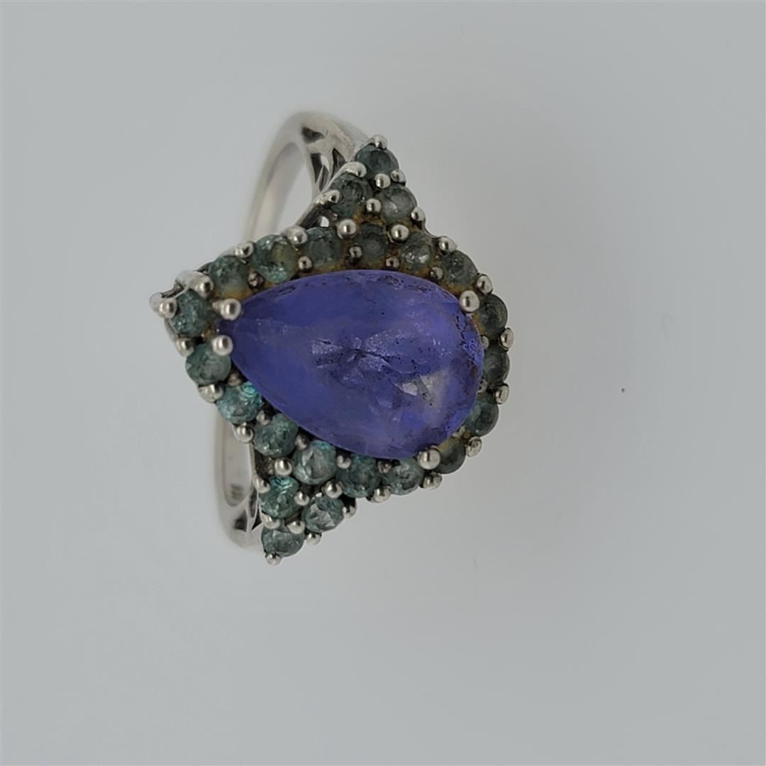 One Sterling Silver Ring. The ring size is 8.5. Contains semiprecious stones.