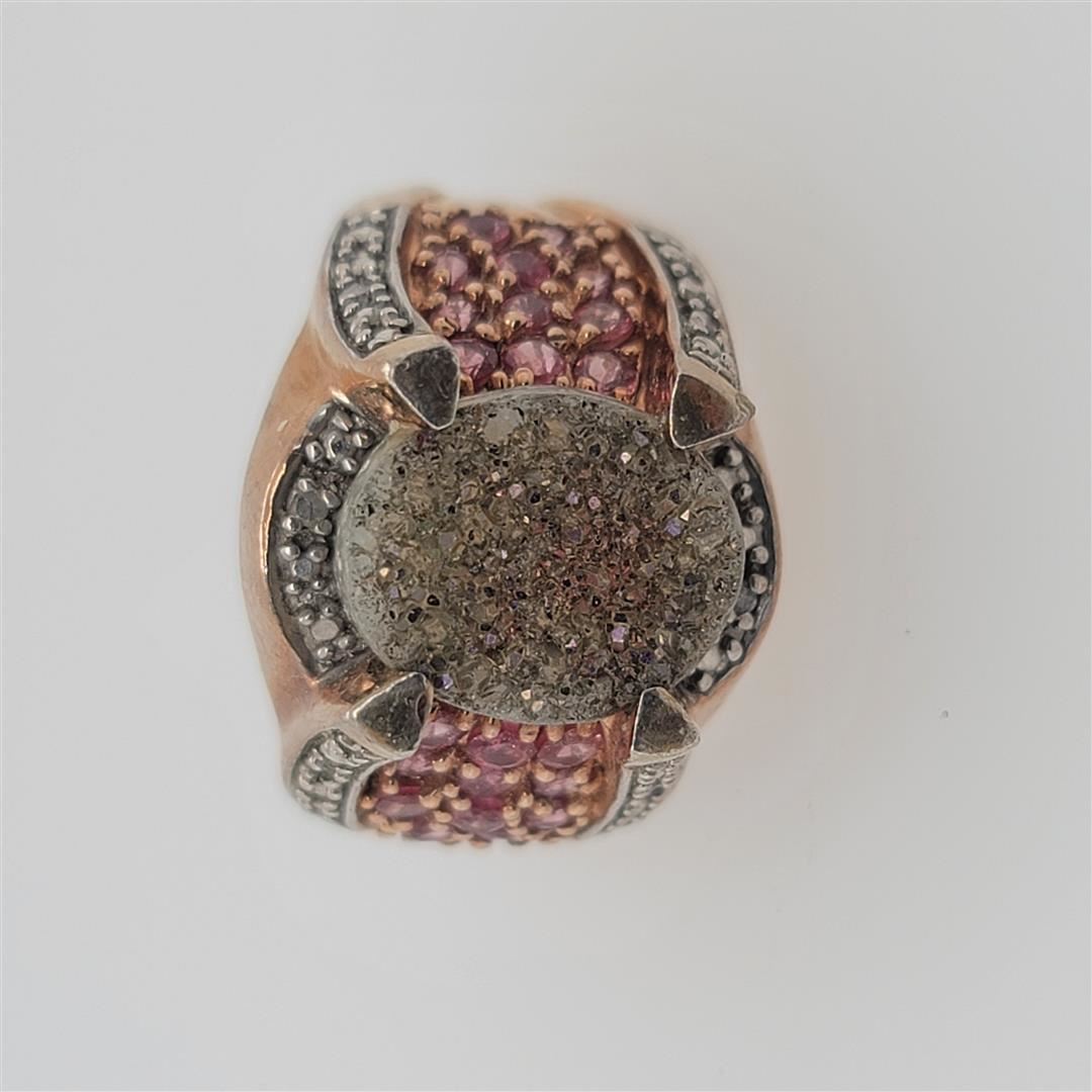One Sterling Silver Ring. The ring size is 7.5. Contains semiprecious stones.