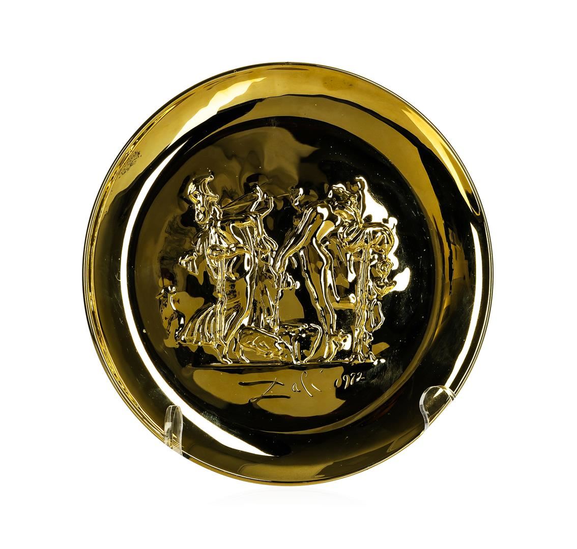One vermeil sterling silver Salvador Dali 1972 annual plate from the Lincoln Mint. The plate measures 8" wide and weighs 282 grams.