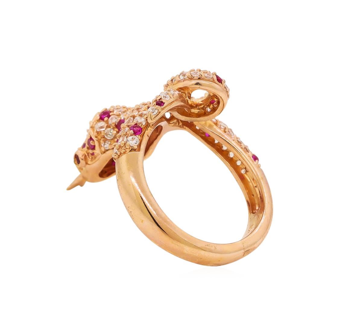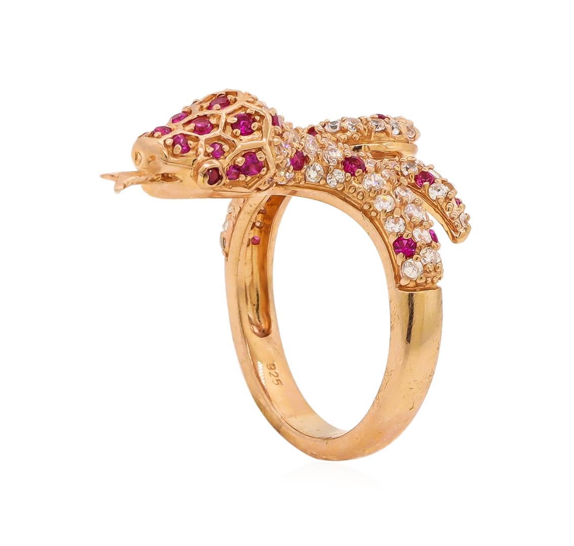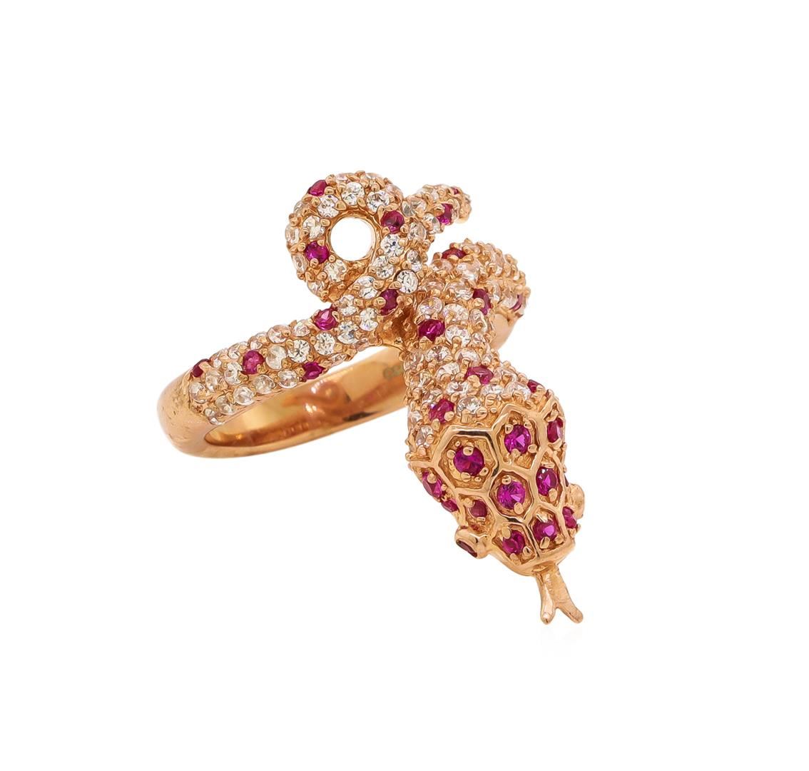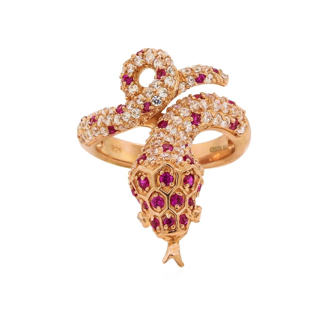 One of a kind high fashion sterling silver Snake Ring weighing 6.4 grams. Containing: Created Ruby, Cubic Zirconia. This sterling silver promises a lasting shine.