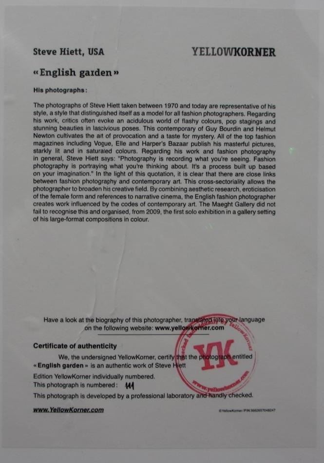 English Garden Certfied Photograph, Steve Hiett YellowKorner Certified Photograph. Certificate of Authenticity from YellowKorner affixed to the back. Matted Dimensions 16"x20". Protected with Clear Mylar Sleeve.