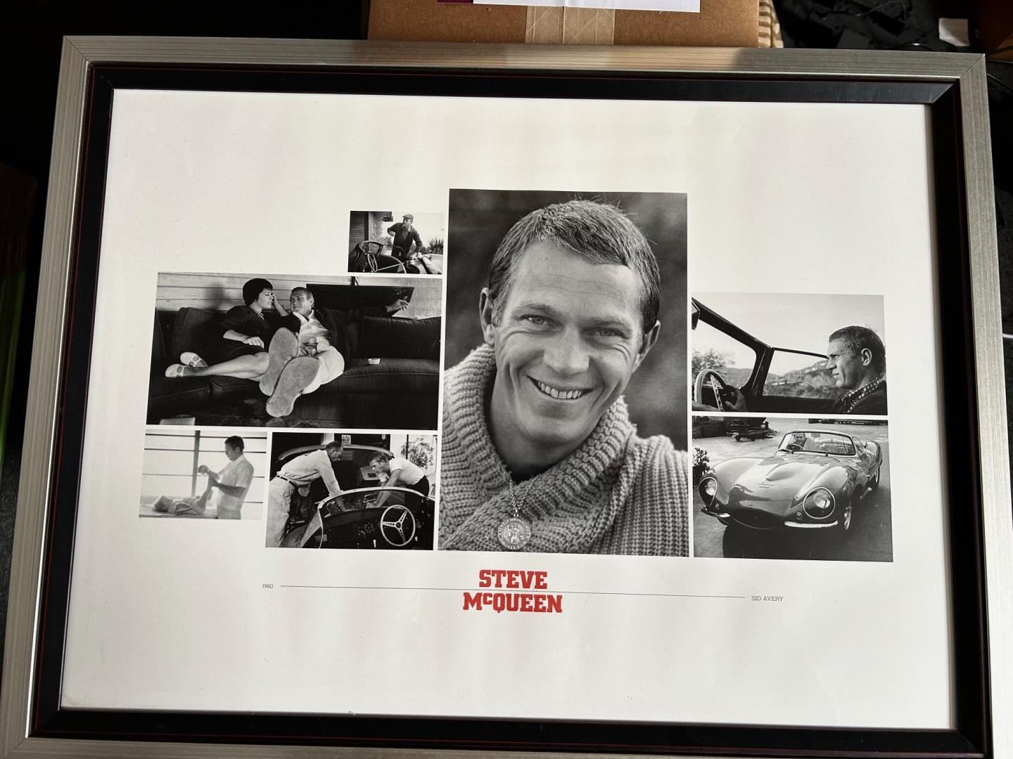 A framed Studio Promo poster of Steve McQueen, 25x19" framed. Photos by Sid Avery
