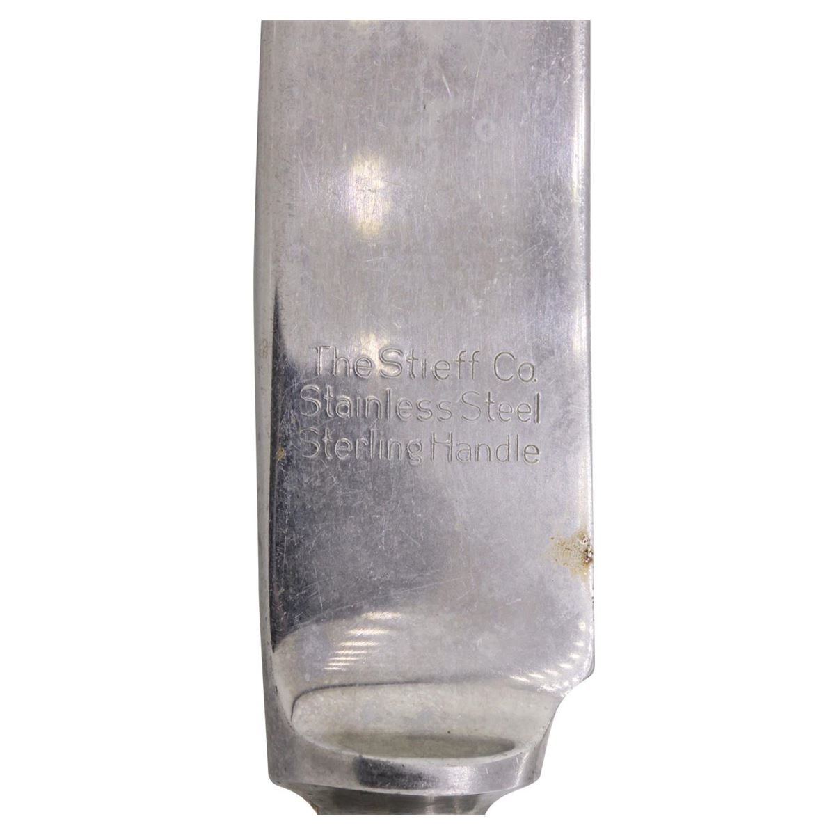 Kirk Stieff rose sterling modern hollow knife (full repousse) 8 3/4'' old French hollow knife, full response in the Stieff Rose sterling 1892 no monogram pattern by Kirk Stieff, and new French hollow knife, full response in the Stieff Rose sterling 1892 no monogram pattern by Kirk Stieff.