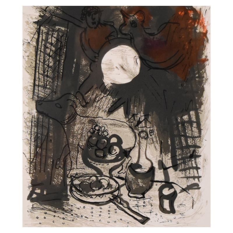 "Still Life" is a lithograph on paper by Marc Chagall (1887-1985). This piece comes custom framed. Includes Letter of Authenticity. Measures approx. 20" x 21.5" (frame), 8" x 9" (image).