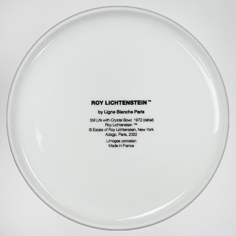 "Still Life with Crystal Bowl" is a Limoges porcelain plate bearing the plate signature inverso of Roy Lichtenstein (1923-1997). This piece comes custom framed. Includes Letter of Authenticity. Measures approx. 16" x 16" (frame), 11" (plate diameter).