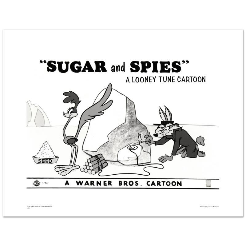 "Sugar and Spies" is a limited edition giclee on paper from Warner Bros., numbered with hologram seal of Authenticity. This image was originally used as a "lobby card" displayed in theater lobbies to publicize animated shorts. Also, includes Certificate of Authenticity! Measures approx. 20" x 16" (with border), 16" x 12" (image).