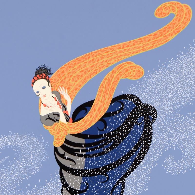 Summer Breeze by Erte (1892-1990). Please see photos and description for all available information. "Summer Breeze" is a limited edition serigraph on paper by Erte (1892-1990), numbered and hand signed by the artist. Includes Certificate of Authenticity. Measures approx. 23" x 30.5" (border), 19" x 26.5" (image). Due to the age of this piece and the delicate nature of the paper it may have some slight imperfections.