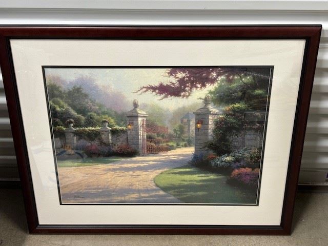 This is framed lithograph by Thomas Kinkade, signed & numbered, with COA. Frame shows some wear but looks good .35.75x43.5 # 1013/1170