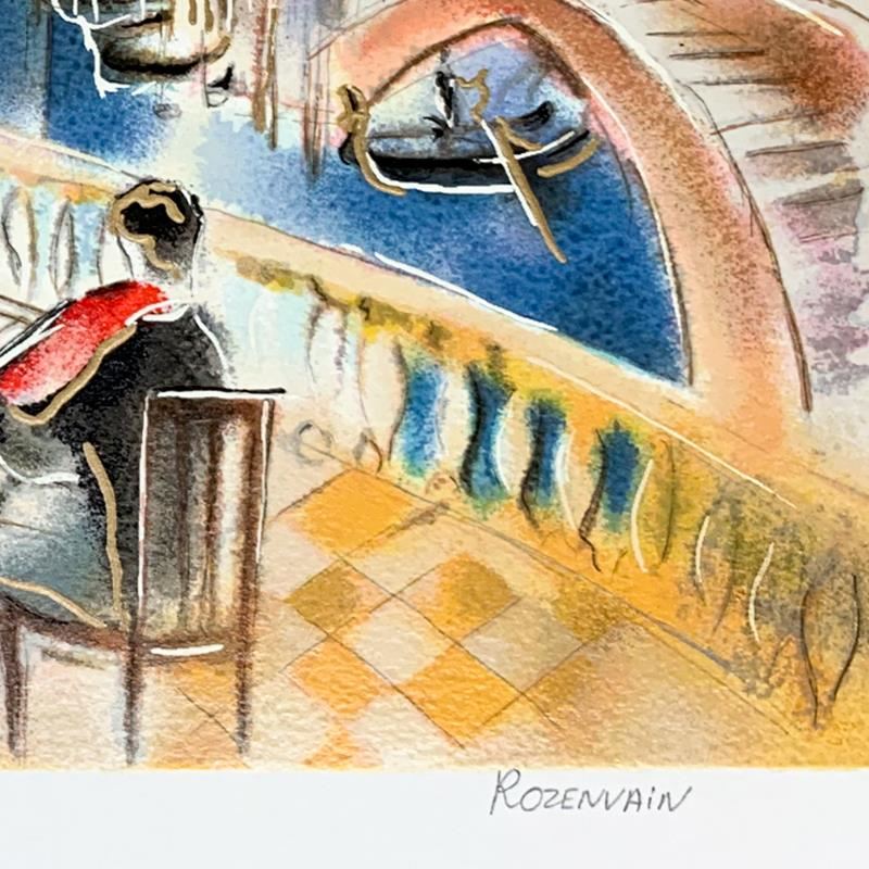"Summer Sonata" is a limited edition serigraph on paper by Michael Rozenvain. It is numbered and hand signed and includes a letter of authenticity. Measures approximately 12" x 16.5" (image).