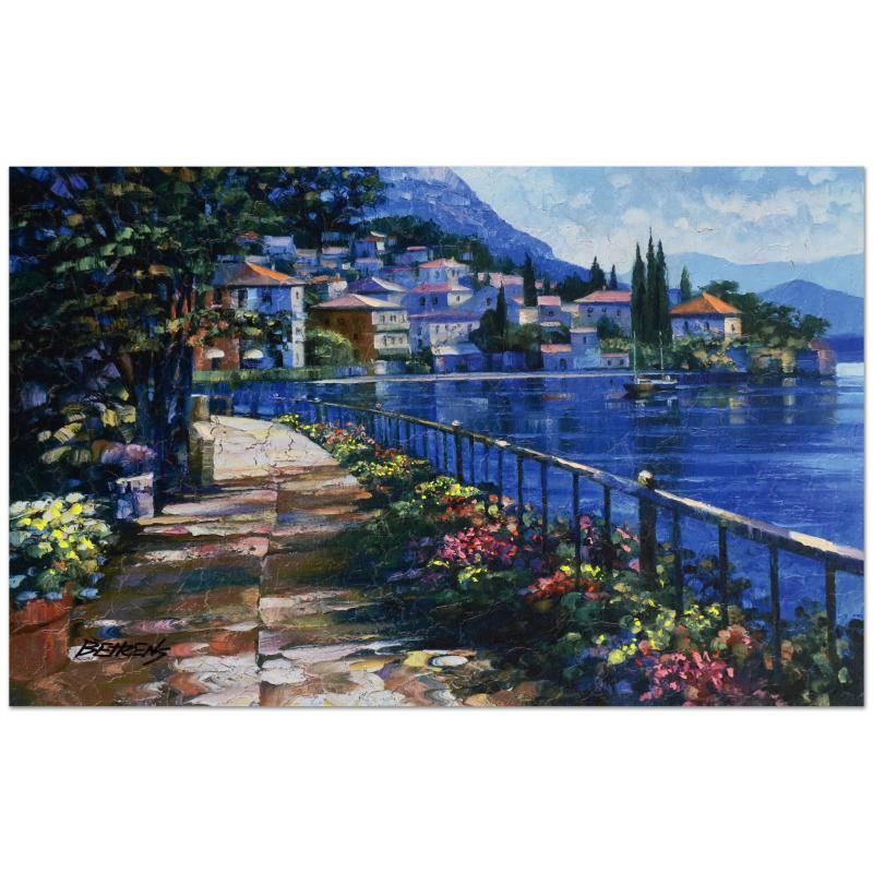"Sunlit Stroll" is a limited edition hand embellished giclee on canvas with a crackled vecchia finish by Howard Behrens (1933-2014), numbered and hand signed by the artist. Includes Certificate of Authenticity! Measures approx. 27" x 17" (image).