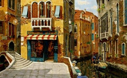 Sunny Day in Venice by Victor Shvaiko. Unframed and stretched on Limited Edition enhanced canvas. Comes with certificate of Authenticity! Dimension (inches): 33x55